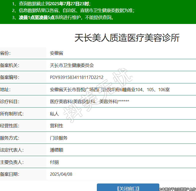 省份:安徽省備案機(jī)關(guān):天長市衛(wèi)生健康委員會備案編號:PDY93915834118117D2212地址:安徽省天長市吾悅廣場西門吾悅?cè)A府6幢商業(yè)104、105、106室診療科目:醫(yī)療美容科(美容皮膚科、美容外科)******所有制形式:私人經(jīng)營性質(zhì):營利性服務(wù)方式:門診服務(wù)法定代表人:潘德順主要負(fù)責(zé)人:付麗備案日期:2025/04/08 -