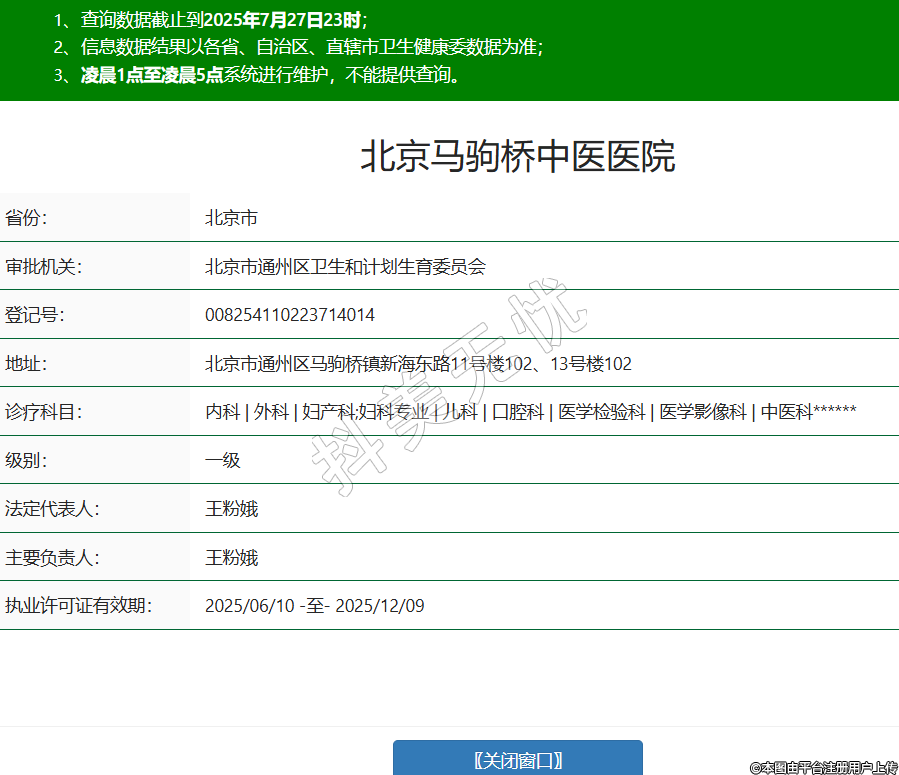 省份:北京市審批機關:北京市通州區(qū)衛(wèi)生和計劃生育委員會登記號:008254110223714014地址:北京市通州區(qū)馬駒橋鎮(zhèn)新海東路11號樓102、13號樓102診療科目:內科 | 外科 | 婦產科;婦科專業(yè) | 兒科 | 口腔科 | 醫(yī)學檢驗科 | 醫(yī)學影像科 | 中醫(yī)科******級別:一級法定代表人:王粉娥主要負責人:王粉娥執(zhí)業(yè)許可證有效期:2025/06/10 -至- 2025/12/09 -