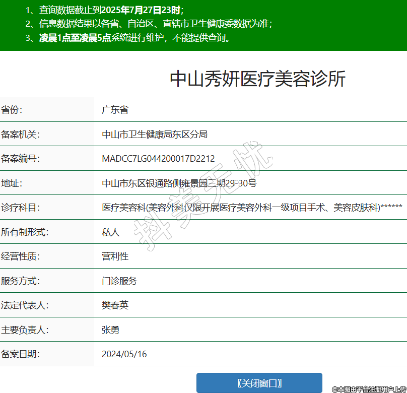 省份:廣東省備案機(jī)關(guān):中山市衛(wèi)生健康局東區(qū)分局備案編號:MADCC7LG044200017D2212地址:中山市東區(qū)銀通路側(cè)雍景園三期29-30號診療科目:醫(yī)療美容科(美容外科僅限開展醫(yī)療美容外科一級項(xiàng)目手術(shù)、美容皮膚科)******所有制形式:私人經(jīng)營性質(zhì):營利性服務(wù)方式:門診服務(wù)法定代表人:樊春英主要負(fù)責(zé)人:張勇備案日期:2024/05/16 -