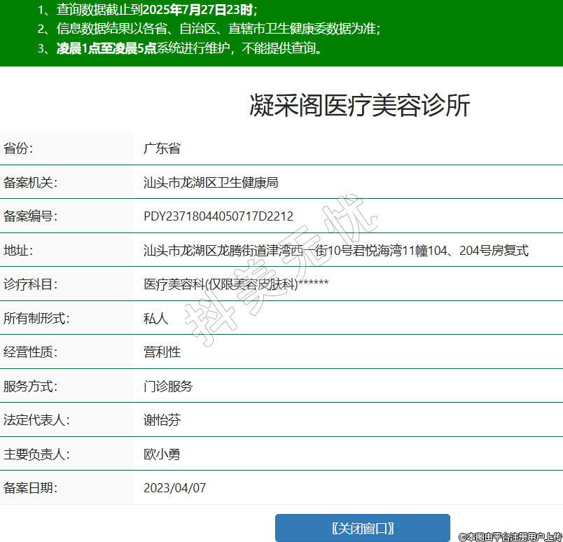 省份:廣東省備案機(jī)關(guān):汕頭市龍湖區(qū)衛(wèi)生健康局備案編號(hào):PDY23718044050717D2212地址:汕頭市龍湖區(qū)龍騰街道津?yàn)澄饕唤?0號(hào)君悅海灣11幢104、204號(hào)房復(fù)式診療科目:醫(yī)療美容科(僅限美容皮膚科)******所有制形式:私人經(jīng)營(yíng)性質(zhì):營(yíng)利性服務(wù)方式:門診服務(wù)法定代表人:謝怡芬主要負(fù)責(zé)人:歐小勇備案日期:2023/04/07 -