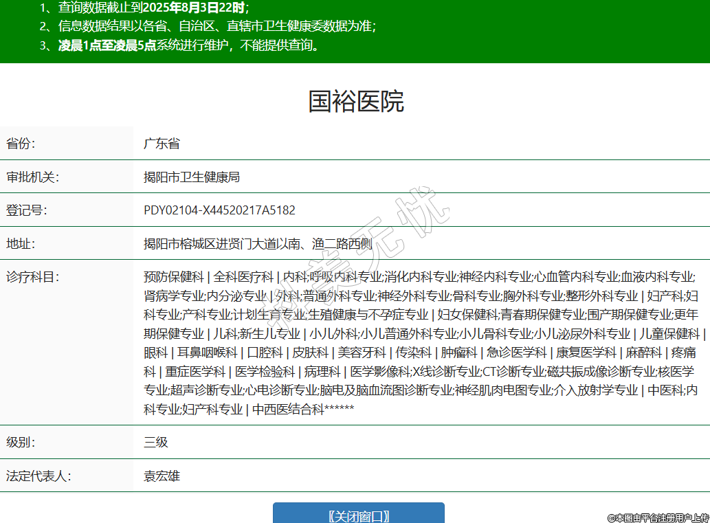省份:廣東省審批機關:揭陽市衛(wèi)生健康局登記號:PDY02104-X44520217A5182地址:揭陽市榕城區(qū)進賢門大道以南、漁二路西側診療科目:預防保健科 | 全科醫(yī)療科 | 內科;呼吸內科專業(yè);消化內科專業(yè);神經內科專業(yè);心血管內科專業(yè);血液內科專業(yè);腎病學專業(yè);內分泌專業(yè) | 外科;普通外科專業(yè);神經外科專業(yè);骨科專業(yè);胸外科專業(yè);整形外科專業(yè) | 婦產科;婦科專業(yè);產科專業(yè);計劃生育專業(yè);生殖健康與不孕癥專業(yè) | 婦女保健科;青春期保健專業(yè);圍產期保健專業(yè);更年期保健專業(yè) | 兒科;新生兒專業(yè) | 小兒外科;小兒普通外科專業(yè);小兒骨科專業(yè);小兒泌尿外科專業(yè) | 兒童保健科 | 眼科 | 耳鼻咽喉科 | 口腔科 | 皮膚科 | 美容牙科 | 傳染科 | 腫瘤科 | 急診醫(yī)學科 | 康復醫(yī)學科 | 麻醉科 | 疼痛科 | 重癥醫(yī)學科 | 醫(yī)學檢驗科 | 病理科 | 醫(yī)學影像科;X線診斷專業(yè);CT診斷專業(yè);磁共振成像診斷專業(yè);核醫(yī)學專業(yè);超聲診斷專業(yè);心電診斷專業(yè);腦電及腦血流圖診斷專業(yè);神經肌肉電圖專業(yè);介入放射學專業(yè) | 中醫(yī)科;內科專業(yè);婦產科專業(yè) | 中西醫(yī)結合科******級別:三級法定代表人:袁宏雄主要負責人:周崢執(zhí)業(yè)許可證有效期:2021/06/16 -至- 2036/06/15 -