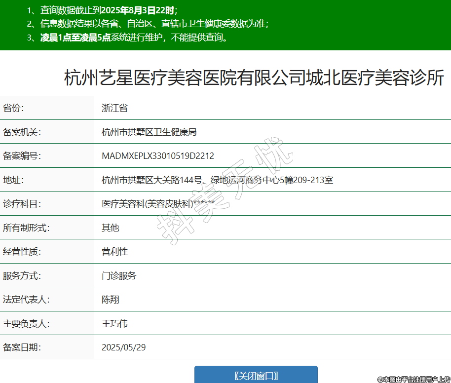 杭州藝星醫(yī)療美容醫(yī)院有限公司城北醫(yī)療美容診所,診療科目:醫(yī)療美容科(美容皮膚科)******
