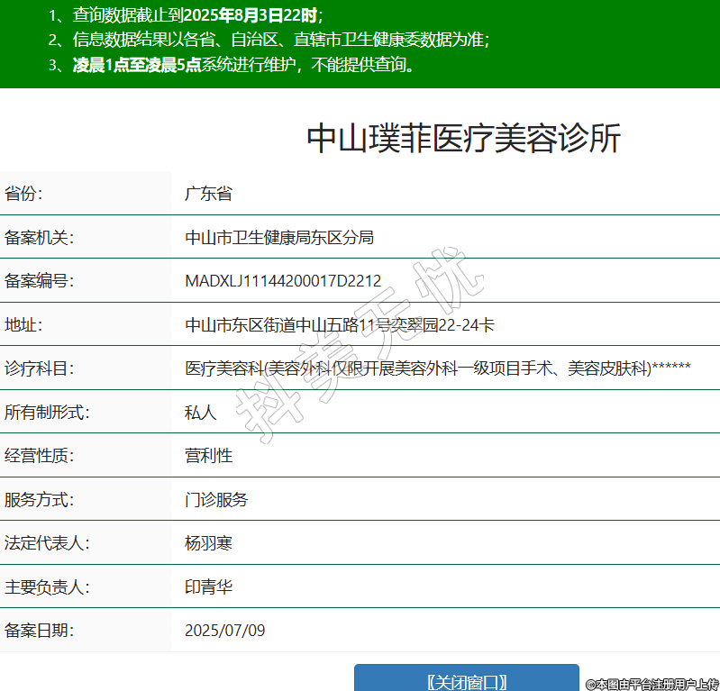 省份:廣東省備案機(jī)關(guān):中山市衛(wèi)生健康局東區(qū)分局備案編號(hào):MADXLJ11144200017D2212地址:中山市東區(qū)街道中山五路11號(hào)奕翠園22-24卡診療科目:醫(yī)療美容科(美容外科僅限開展美容外科一級(jí)項(xiàng)目手術(shù)、美容皮膚科)******所有制形式:私人經(jīng)營性質(zhì):營利性服務(wù)方式:門診服務(wù)法定代表人:楊羽寒主要負(fù)責(zé)人:印青華備案日期:2025/07/09 -
