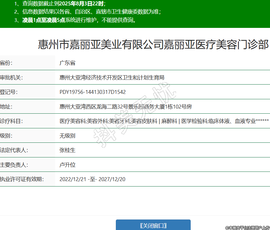 惠州市嘉麗亞美業(yè)有限公司嘉麗亞醫(yī)療美容門診部