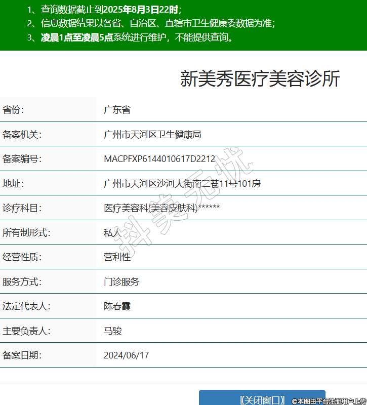 省份:廣東省備案機(jī)關(guān):廣州市天河區(qū)衛(wèi)生健康局備案編號:MACPFXP6144010617D2212地址:廣州市天河區(qū)沙河大街南二巷11號101房診療科目:醫(yī)療美容科(美容皮膚科)******所有制形式:私人經(jīng)營性質(zhì):營利性服務(wù)方式:門診服務(wù)法定代表人:陳春霞主要負(fù)責(zé)人:馬駿備案日期:2024/06/17 -