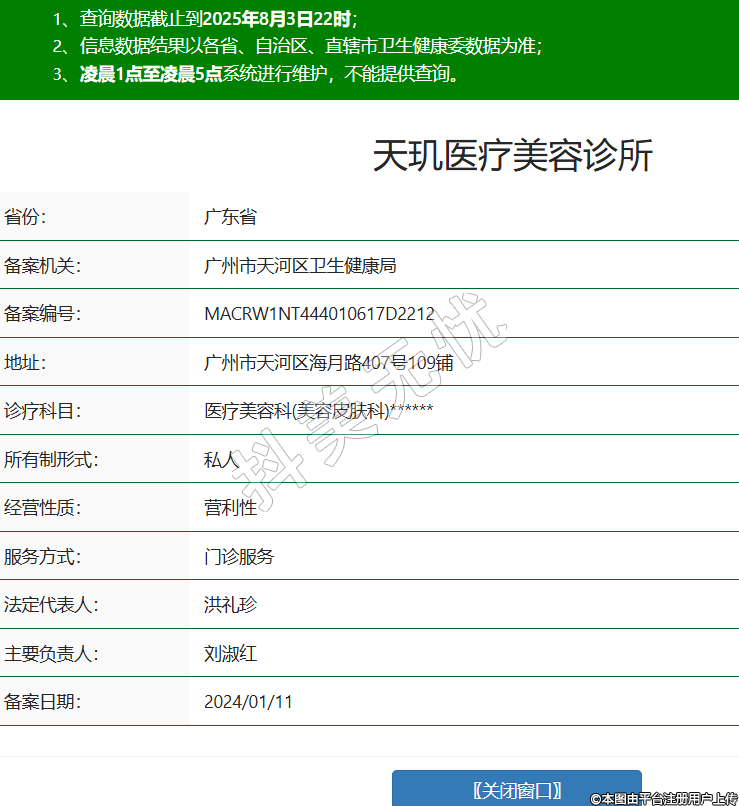 省份:廣東省備案機(jī)關(guān):廣州市天河區(qū)衛(wèi)生健康局備案編號(hào):MACRW1NT444010617D2212地址:廣州市天河區(qū)海月路407號(hào)109鋪診療科目:醫(yī)療美容科(美容皮膚科)******所有制形式:私人經(jīng)營(yíng)性質(zhì):營(yíng)利性服務(wù)方式:門診服務(wù)法定代表人:洪禮珍主要負(fù)責(zé)人:劉淑紅備案日期:2024/01/11 -