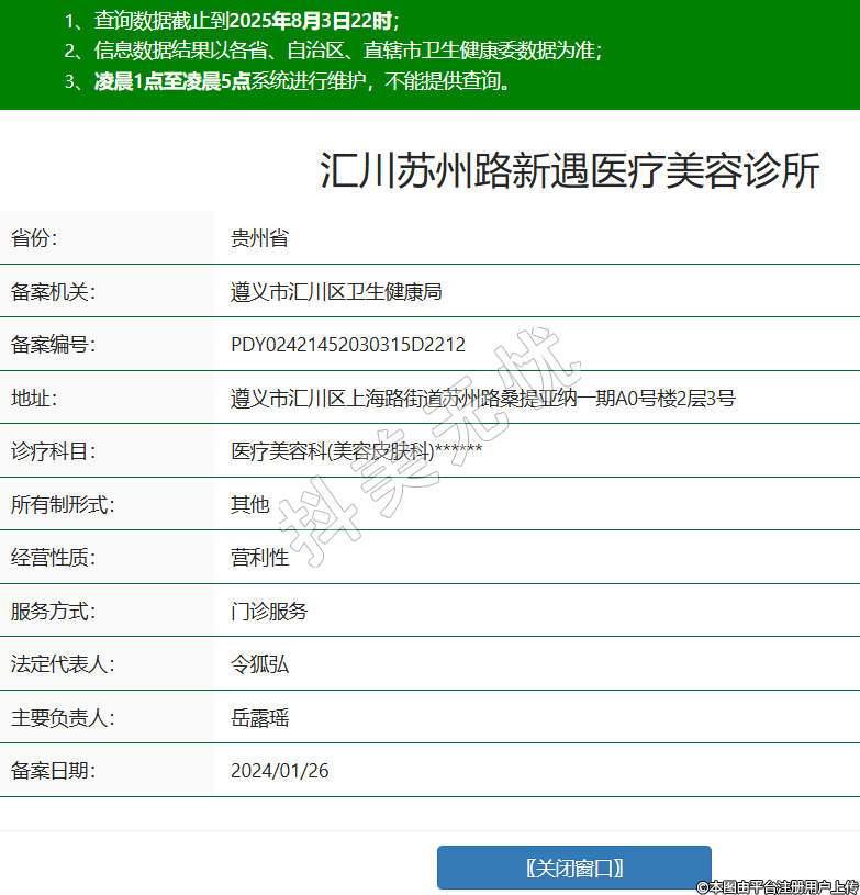 省份:貴州省備案機(jī)關(guān):遵義市匯川區(qū)衛(wèi)生健康局備案編號(hào):PDY02421452030315D2212地址:遵義市匯川區(qū)上海路街道蘇州路桑提亞納一期A0號(hào)樓2層3號(hào)診療科目:醫(yī)療美容科(美容皮膚科)******所有制形式:其他經(jīng)營(yíng)性質(zhì):營(yíng)利性服務(wù)方式:門診服務(wù)法定代表人:令狐弘主要負(fù)責(zé)人:岳露瑤備案日期:2024/01/26 -
