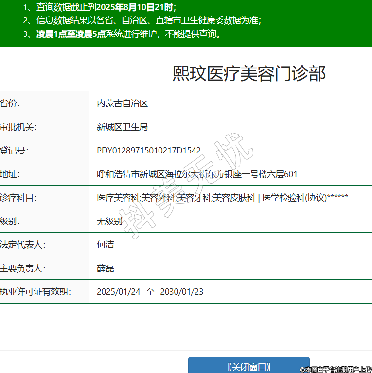 省份:內(nèi)蒙古自治區(qū)審批機(jī)關(guān):新城區(qū)衛(wèi)生局登記號(hào):PDY01289715010217D1542地址:呼和浩特市新城區(qū)海拉爾大街東方銀座一號(hào)樓六層601診療科目:醫(yī)療美容科;美容外科;美容牙科;美容皮膚科 | 醫(yī)學(xué)檢驗(yàn)科(協(xié)議)******級(jí)別:無(wú)級(jí)別法定代表人:何潔主要負(fù)責(zé)人:薛磊執(zhí)業(yè)許可證有效期:2025/01/24 -至- 2030/01/23 -