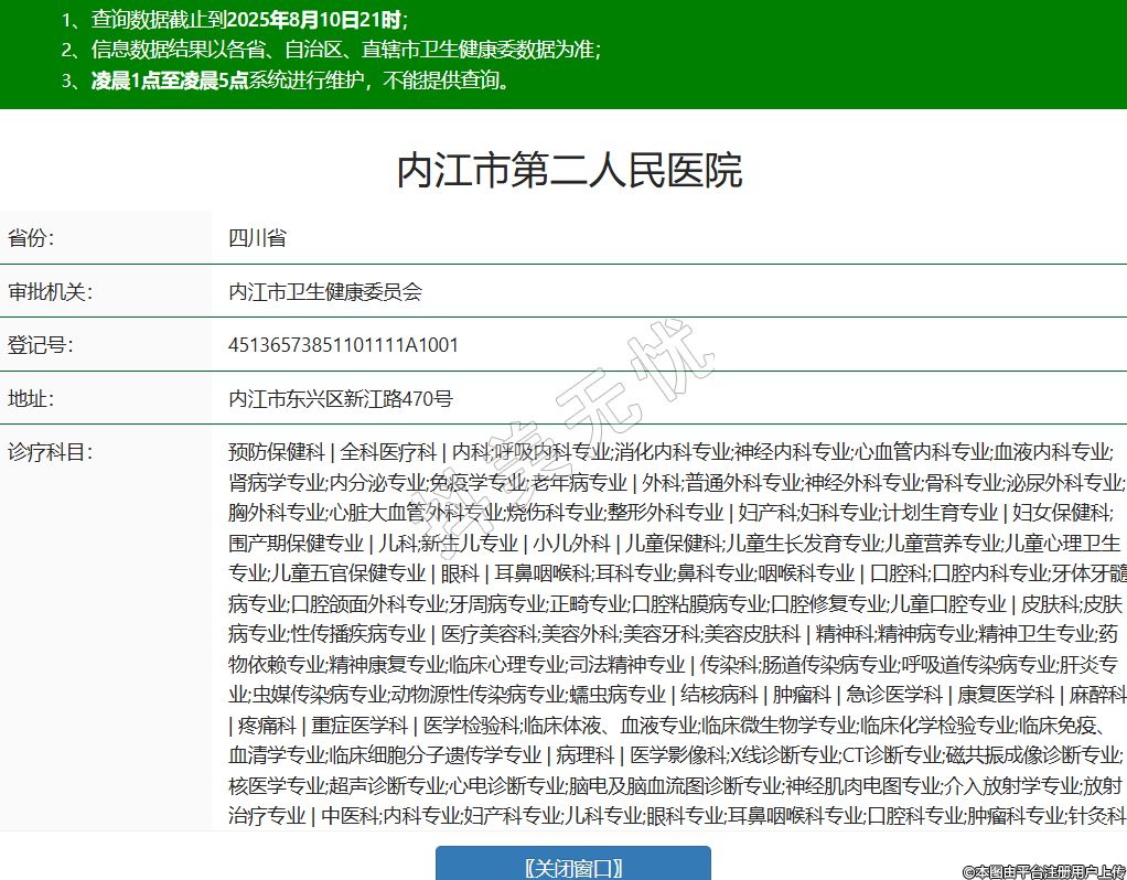 省份:四川省審批機關:內江市衛(wèi)生健康委員會登記號:45136573851101111A1001地址:內江市東興區(qū)新江路470號診療科目:預防保健科 | 全科醫(yī)療科 | 內科;呼吸內科專業(yè);消化內科專業(yè);神經(jīng)內科專業(yè);心血管內科專業(yè);血液內科專業(yè);腎病學專業(yè);內分泌專業(yè);免疫學專業(yè);老年病專業(yè) | 外科;普通外科專業(yè);神經(jīng)外科專業(yè);骨科專業(yè);泌尿外科專業(yè);胸外科專業(yè);心臟大血管外科專業(yè);燒傷科專業(yè);整形外科專業(yè) | 婦產(chǎn)科;婦科專業(yè);計劃生育專業(yè) | 婦女保健科;圍產(chǎn)期保健專業(yè) | 兒科;新生兒專業(yè) | 小兒外科 | 兒童保健科;兒童生長發(fā)育專業(yè);兒童營養(yǎng)專業(yè);兒童心理衛(wèi)生專業(yè);兒童五官保健專業(yè) | 眼科 | 耳鼻咽喉科;耳科專業(yè);鼻科專業(yè);咽喉科專業(yè) | 口腔科;口腔內科專業(yè);牙體牙髓病專業(yè);口腔頜面外科專業(yè);牙周病專業(yè);正畸專業(yè);口腔粘膜病專業(yè);口腔修復專業(yè);兒童口腔專業(yè) | 皮膚科;皮膚病專業(yè);性傳播疾病專業(yè) | 醫(yī)療美容科;美容外科;美容牙科;美容皮膚科 | 精神科;精神病專業(yè);精神衛(wèi)生專業(yè);藥物依賴專業(yè);精神康復專業(yè);臨床心理專業(yè);司法精神專業(yè) | 傳染科;腸道傳染病專業(yè);呼吸道傳染病專業(yè);肝炎專業(yè);蟲媒傳染病專業(yè);動物源性傳染病專業(yè);蠕蟲病專業(yè) | 結核病科 | 腫瘤科 | 急診醫(yī)學科 | 康復醫(yī)學科 | 麻醉科 | 疼痛科 | 重癥醫(yī)學科 | 醫(yī)學檢驗科;臨床體液、血液專業(yè);臨床微生物學專業(yè);臨床化學檢驗專業(yè);臨床免疫、血清學專業(yè);臨床細胞分子遺傳學專業(yè) | 病理科 | 醫(yī)學影像科;X線診斷專業(yè);CT診斷專業(yè);磁共振成像診斷專業(yè);核醫(yī)學專業(yè);超聲診斷專業(yè);心電診斷專業(yè);腦電及腦血流圖診斷專業(yè);神經(jīng)肌肉電圖專業(yè);介入放射學專業(yè);放射治療專業(yè) | 中醫(yī)科;內科專業(yè);婦產(chǎn)科專業(yè);兒科專業(yè);眼科專業(yè);耳鼻咽喉科專業(yè);口腔科專業(yè);腫瘤科專業(yè);針灸科專業(yè);推拿科專業(yè);康復醫(yī)學專業(yè);急診科專業(yè) | 中西醫(yī)結合科******級別:三級法定代表人:唐賢文主要負責人:唐賢文執(zhí)業(yè)許可證有效期:2024/07/10 -至- 2027/07/09 -