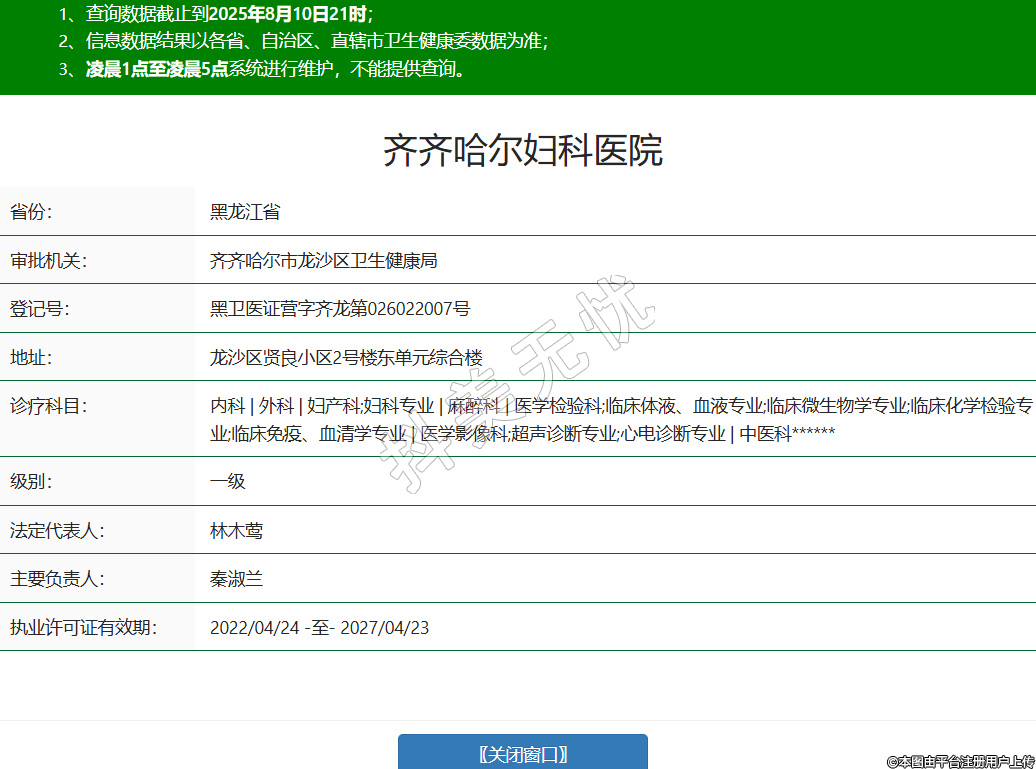 省份:黑龍江省審批機(jī)關(guān):齊齊哈爾市龍沙區(qū)衛(wèi)生健康局登記號(hào):黑衛(wèi)醫(yī)證營(yíng)字齊龍第026022007號(hào)地址:龍沙區(qū)賢良小區(qū)2號(hào)樓東單元綜合樓診療科目:內(nèi)科 | 外科 | 婦產(chǎn)科;婦科專業(yè) | 麻醉科 | 醫(yī)學(xué)檢驗(yàn)科;臨床體液、血液專業(yè);臨床微生物學(xué)專業(yè);臨床化學(xué)檢驗(yàn)專業(yè);臨床免疫、血清學(xué)專業(yè) | 醫(yī)學(xué)影像科;超聲診斷專業(yè);心電診斷專業(yè) | 中醫(yī)科******級(jí)別:一級(jí)法定代表人:林木鶯主要負(fù)責(zé)人:秦淑蘭執(zhí)業(yè)許可證有效期:2022/04/24 -至- 2027/04/23 -
