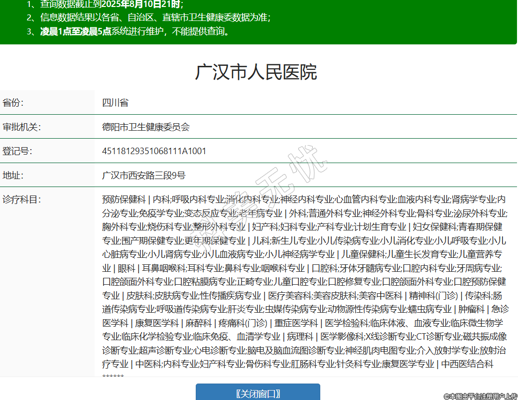 省份:四川省審批機(jī)關(guān):德陽(yáng)市衛(wèi)生健康委員會(huì)登記號(hào):45118129351068111A1001地址:廣漢市西安路三段9號(hào)診療科目:預(yù)防保健科 | 內(nèi)科;呼吸內(nèi)科專業(yè);消化內(nèi)科專業(yè);神經(jīng)內(nèi)科專業(yè);心血管內(nèi)科專業(yè);血液內(nèi)科專業(yè);腎病學(xué)專業(yè);內(nèi)分泌專業(yè);免疫學(xué)專業(yè);變態(tài)反應(yīng)專業(yè);老年病專業(yè) | 外科;普通外科專業(yè);神經(jīng)外科專業(yè);骨科專業(yè);泌尿外科專業(yè);胸外科專業(yè);燒傷科專業(yè);整形外科專業(yè) | 婦產(chǎn)科;婦科專業(yè);產(chǎn)科專業(yè);計(jì)劃生育專業(yè) | 婦女保健科;青春期保健專業(yè);圍產(chǎn)期保健專業(yè);更年期保健專業(yè) | 兒科;新生兒專業(yè);小兒傳染病專業(yè);小兒消化專業(yè);小兒呼吸專業(yè);小兒心臟病專業(yè);小兒腎病專業(yè);小兒血液病專業(yè);小兒神經(jīng)病學(xué)專業(yè) | 兒童保健科;兒童生長(zhǎng)發(fā)育專業(yè);兒童營(yíng)養(yǎng)專業(yè) | 眼科 | 耳鼻咽喉科;耳科專業(yè);鼻科專業(yè);咽喉科專業(yè) | 口腔科;牙體牙髓病專業(yè);口腔內(nèi)科專業(yè);牙周病專業(yè);口腔頜面外科專業(yè);口腔粘膜病專業(yè);正畸專業(yè);兒童口腔專業(yè);口腔修復(fù)專業(yè);口腔頜面外科專業(yè);口腔預(yù)防保健專業(yè) | 皮膚科;皮膚病專業(yè);性傳播疾病專業(yè) | 醫(yī)療美容科;美容皮膚科;美容中醫(yī)科 | 精神科(門診) | 傳染科;腸道傳染病專業(yè);呼吸道傳染病專業(yè);肝炎專業(yè);蟲(chóng)媒傳染病專業(yè);動(dòng)物源性傳染病專業(yè);蠕蟲(chóng)病專業(yè) | 腫瘤科 | 急診醫(yī)學(xué)科 | 康復(fù)醫(yī)學(xué)科 | 麻醉科 | 疼痛科(門診) | 重癥醫(yī)學(xué)科 | 醫(yī)學(xué)檢驗(yàn)科;臨床體液、血液專業(yè);臨床微生物學(xué)專業(yè);臨床化學(xué)檢驗(yàn)專業(yè);臨床免疫、血清學(xué)專業(yè) | 病理科 | 醫(yī)學(xué)影像科;X線診斷專業(yè);CT診斷專業(yè);磁共振成像診斷專業(yè);超聲診斷專業(yè);心電診斷專業(yè);腦電及腦血流圖診斷專業(yè);神經(jīng)肌肉電圖專業(yè);介入放射學(xué)專業(yè);放射治療專業(yè) | 中醫(yī)科;內(nèi)科專業(yè);婦產(chǎn)科專業(yè);骨傷科專業(yè);肛腸科專業(yè);針灸科專業(yè);康復(fù)醫(yī)學(xué)專業(yè) | 中西醫(yī)結(jié)合科******級(jí)別:三級(jí)法定代表人:呂波主要負(fù)責(zé)人:呂波執(zhí)業(yè)許可證有效期:2017/12/26 -至- 2032/12/25 -