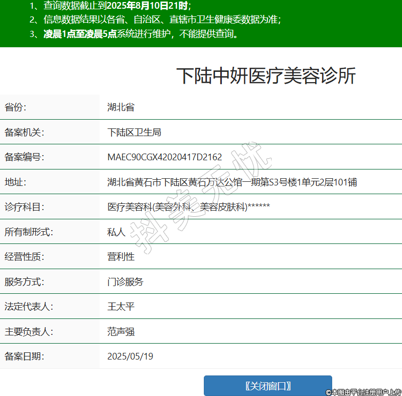 省份:湖北省備案機關:下陸區(qū)衛(wèi)生局備案編號:MAEC90CGX42020417D2162地址:湖北省黃石市下陸區(qū)黃石萬達公館一期第S3號樓1單元2層101鋪診療科目:醫(yī)療美容科(美容外科、美容皮膚科)******所有制形式:私人經(jīng)營性質(zhì):營利性服務方式:門診服務法定代表人:王太平主要負責人:范聲強備案日期:2025/05/19 -