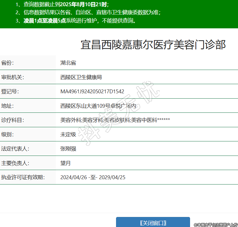 宜昌西陵嘉惠爾醫(yī)療美容門診部,診療科目:美容外科;美容牙科;美容皮膚科;美容中醫(yī)科******