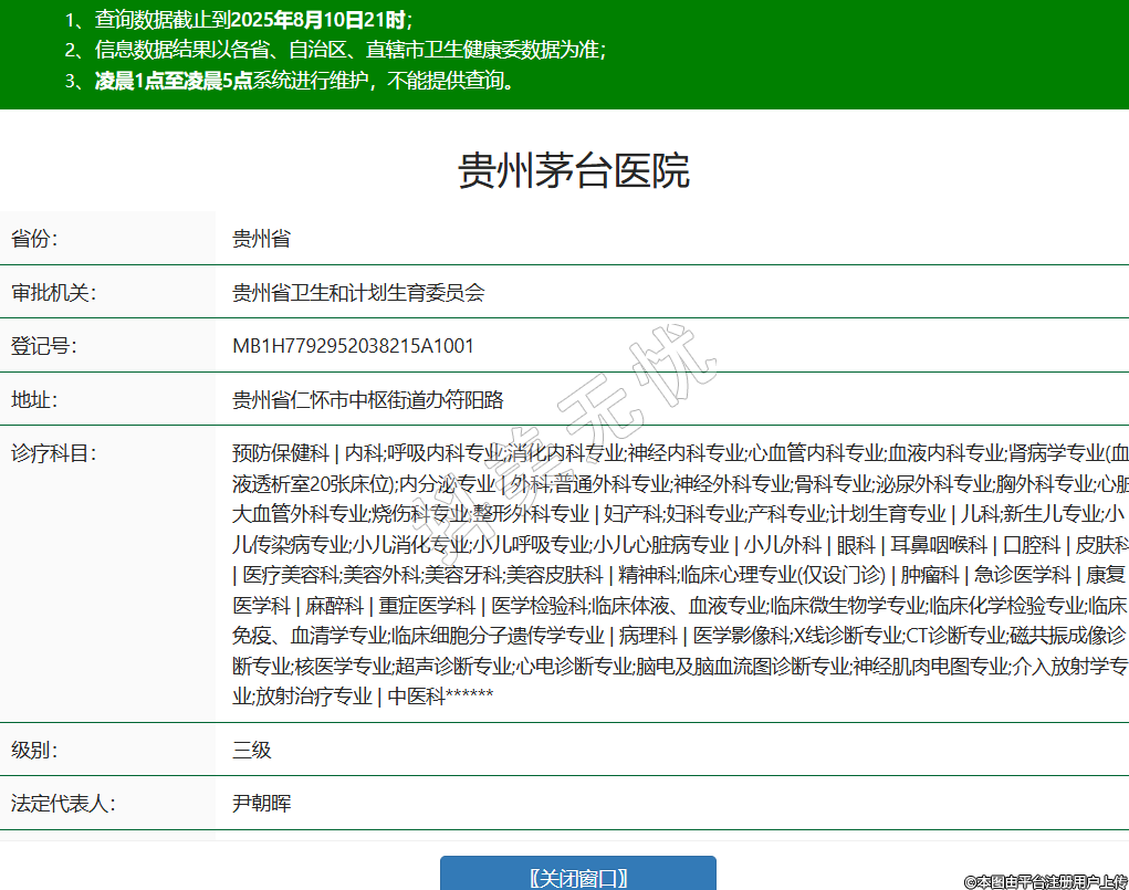省份:貴州省審批機關(guān):貴州省衛(wèi)生和計劃生育委員會登記號:MB1H7792952038215A1001地址:貴州省仁懷市中樞街道辦符陽路診療科目:預防保健科 | 內(nèi)科;呼吸內(nèi)科專業(yè);消化內(nèi)科專業(yè);神經(jīng)內(nèi)科專業(yè);心血管內(nèi)科專業(yè);血液內(nèi)科專業(yè);腎病學專業(yè)(血液透析室20張床位);內(nèi)分泌專業(yè) | 外科;普通外科專業(yè);神經(jīng)外科專業(yè);骨科專業(yè);泌尿外科專業(yè);胸外科專業(yè);心臟大血管外科專業(yè);燒傷科專業(yè);整形外科專業(yè) | 婦產(chǎn)科;婦科專業(yè);產(chǎn)科專業(yè);計劃生育專業(yè) | 兒科;新生兒專業(yè);小兒傳染病專業(yè);小兒消化專業(yè);小兒呼吸專業(yè);小兒心臟病專業(yè) | 小兒外科 | 眼科 | 耳鼻咽喉科 | 口腔科 | 皮膚科 | 醫(yī)療美容科;美容外科;美容牙科;美容皮膚科 | 精神科;臨床心理專業(yè)(僅設(shè)門診) | 腫瘤科 | 急診醫(yī)學科 | 康復醫(yī)學科 | 麻醉科 | 重癥醫(yī)學科 | 醫(yī)學檢驗科;臨床體液、血液專業(yè);臨床微生物學專業(yè);臨床化學檢驗專業(yè);臨床免疫、血清學專業(yè);臨床細胞分子遺傳學專業(yè) | 病理科 | 醫(yī)學影像科;X線診斷專業(yè);CT診斷專業(yè);磁共振成像診斷專業(yè);核醫(yī)學專業(yè);超聲診斷專業(yè);心電診斷專業(yè);腦電及腦血流圖診斷專業(yè);神經(jīng)肌肉電圖專業(yè);介入放射學專業(yè);放射治療專業(yè) | 中醫(yī)科******級別:三級法定代表人:尹朝暉主要負責人:尹朝暉執(zhí)業(yè)許可證有效期:2025/04/25 -至- 2028/04/25 -