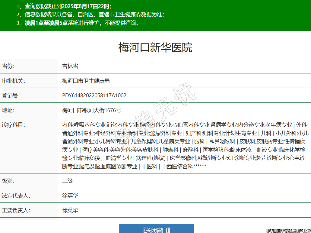 省份:吉林省審批機(jī)關(guān):梅河口市衛(wèi)生健康局登記號(hào):PDY61482022058117A1002地址:梅河口市銀河大街1676號(hào)診療科目:內(nèi)科;呼吸內(nèi)科專(zhuān)業(yè);消化內(nèi)科專(zhuān)業(yè);神經(jīng)內(nèi)科專(zhuān)業(yè);心血管內(nèi)科專(zhuān)業(yè);腎病學(xué)專(zhuān)業(yè);內(nèi)分泌專(zhuān)業(yè);老年病專(zhuān)業(yè) | 外科;普通外科專(zhuān)業(yè);神經(jīng)外科專(zhuān)業(yè);骨科專(zhuān)業(yè);泌尿外科專(zhuān)業(yè) | 婦產(chǎn)科;婦科專(zhuān)業(yè);計(jì)劃生育專(zhuān)業(yè) | 兒科 | 小兒外科;小兒普通外科專(zhuān)業(yè);小兒骨科專(zhuān)業(yè) | 兒童保健科;兒童康復(fù)專(zhuān)業(yè) | 眼科 | 耳鼻咽喉科 | 皮膚科;皮膚病專(zhuān)業(yè);性傳播疾病專(zhuān)業(yè) | 醫(yī)療美容科;美容外科;美容皮膚科 | 腫瘤科 | 麻醉科 | 醫(yī)學(xué)檢驗(yàn)科;臨床體液、血液專(zhuān)業(yè);臨床化學(xué)檢驗(yàn)專(zhuān)業(yè);臨床免疫、血清學(xué)專(zhuān)業(yè) | 病理科(協(xié)議) | 醫(yī)學(xué)影像科;X線診斷專(zhuān)業(yè);CT診斷專(zhuān)業(yè);超聲診斷專(zhuān)業(yè);心電診斷專(zhuān)業(yè);腦電及腦血流圖診斷專(zhuān)業(yè) | 中醫(yī)科 | 中西醫(yī)結(jié)合科******級(jí)別:二級(jí)法定代表人:徐英華主要負(fù)責(zé)人:徐英華執(zhí)業(yè)許可證有效期:2024/03/21 -至- 2028/10/17 -