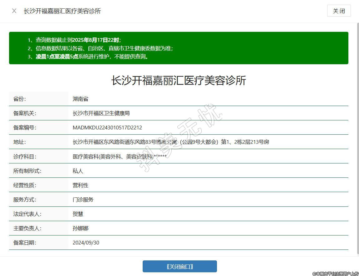 長沙嘉麗匯醫(yī)療美容診所成立于2024年,位于湖南省長沙市開福區(qū)東風(fēng)路街道東風(fēng)路83號博度公寓(公園9號大都會)第1、2棟2層213號房,由專業(yè)醫(yī)美團(tuán)隊打造,具備完善醫(yī)療環(huán)境與專業(yè)醫(yī)療技術(shù),開展項目豐富,涵蓋美容外科、激光美膚、微整抗衰等項目,始終秉持科學(xué)、嚴(yán)謹(jǐn)態(tài)度對待每位顧客。