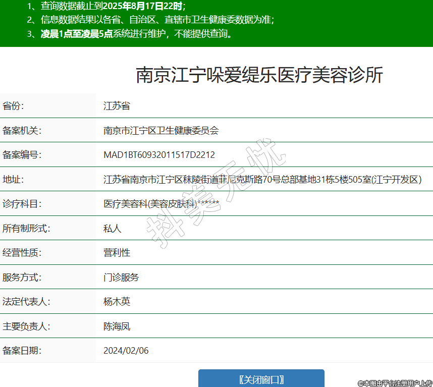 南京江寧哚愛緹樂醫(yī)療美容診所,診療科目:醫(yī)療美容科(美容皮膚科)******