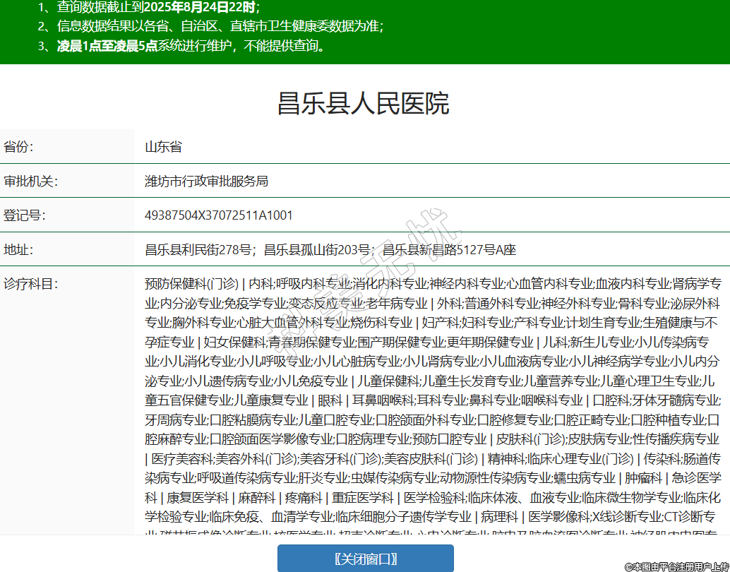 省份:山東省審批機(jī)關(guān):濰坊市行政審批服務(wù)局登記號(hào):49387504X37072511A1001地址:昌樂縣利民街278號(hào);昌樂縣孤山街203號(hào);昌樂縣新昌路5127號(hào)A座診療科目:預(yù)防保健科(門診) | 內(nèi)科;呼吸內(nèi)科專業(yè);消化內(nèi)科專業(yè);神經(jīng)內(nèi)科專業(yè);心血管內(nèi)科專業(yè);血液內(nèi)科專業(yè);腎病學(xué)專業(yè);內(nèi)分泌專業(yè);免疫學(xué)專業(yè);變態(tài)反應(yīng)專業(yè);老年病專業(yè) | 外科;普通外科專業(yè);神經(jīng)外科專業(yè);骨科專業(yè);泌尿外科專業(yè);胸外科專業(yè);心臟大血管外科專業(yè);燒傷科專業(yè) | 婦產(chǎn)科;婦科專業(yè);產(chǎn)科專業(yè);計(jì)劃生育專業(yè);生殖健康與不孕癥專業(yè) | 婦女保健科;青春期保健專業(yè);圍產(chǎn)期保健專業(yè);更年期保健專業(yè) | 兒科;新生兒專業(yè);小兒傳染病專業(yè);小兒消化專業(yè);小兒呼吸專業(yè);小兒心臟病專業(yè);小兒腎病專業(yè);小兒血液病專業(yè);小兒神經(jīng)病學(xué)專業(yè);小兒內(nèi)分泌專業(yè);小兒遺傳病專業(yè);小兒免疫專業(yè) | 兒童保健科;兒童生長發(fā)育專業(yè);兒童營養(yǎng)專業(yè);兒童心理衛(wèi)生專業(yè);兒童五官保健專業(yè);兒童康復(fù)專業(yè) | 眼科 | 耳鼻咽喉科;耳科專業(yè);鼻科專業(yè);咽喉科專業(yè) | 口腔科;牙體牙髓病專業(yè);牙周病專業(yè);口腔粘膜病專業(yè);兒童口腔專業(yè);口腔頜面外科專業(yè);口腔修復(fù)專業(yè);口腔正畸專業(yè);口腔種植專業(yè);口腔麻醉專業(yè);口腔頜面醫(yī)學(xué)影像專業(yè);口腔病理專業(yè);預(yù)防口腔專業(yè) | 皮膚科(門診);皮膚病專業(yè);性傳播疾病專業(yè) | 醫(yī)療美容科;美容外科(門診);美容牙科(門診);美容皮膚科(門診) | 精神科;臨床心理專業(yè)(門診) | 傳染科;腸道傳染病專業(yè);呼吸道傳染病專業(yè);肝炎專業(yè);蟲媒傳染病專業(yè);動(dòng)物源性傳染病專業(yè);蠕蟲病專業(yè) | 腫瘤科 | 急診醫(yī)學(xué)科 | 康復(fù)醫(yī)學(xué)科 | 麻醉科 | 疼痛科 | 重癥醫(yī)學(xué)科 | 醫(yī)學(xué)檢驗(yàn)科;臨床體液、血液專業(yè);臨床微生物學(xué)專業(yè);臨床化學(xué)檢驗(yàn)專業(yè);臨床免疫、血清學(xué)專業(yè);臨床細(xì)胞分子遺傳學(xué)專業(yè) | 病理科 | 醫(yī)學(xué)影像科;X線診斷專業(yè);CT診斷專業(yè);磁共振成像診斷專業(yè);核醫(yī)學(xué)專業(yè);超聲診斷專業(yè);心電診斷專業(yè);腦電及腦血流圖診斷專業(yè);神經(jīng)肌肉電圖專業(yè);介入放射學(xué)專業(yè);放射治療專業(yè) | 中醫(yī)科;內(nèi)科專業(yè);推拿科專業(yè);康復(fù)醫(yī)學(xué)專業(yè)******級(jí)別:二級(jí)法定代表人:肖榮偉主要負(fù)責(zé)人:肖榮偉執(zhí)業(yè)許可證有效期:2025/06/24 -至- 2035/10/08 -