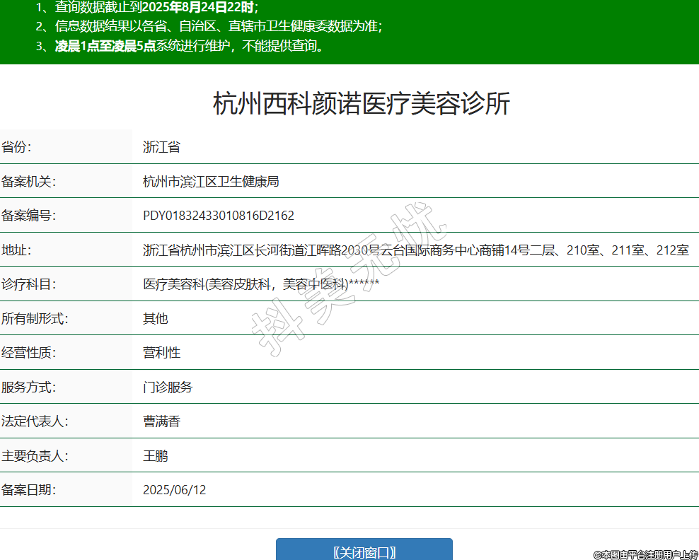 省份:浙江省備案機關(guān):杭州市濱江區(qū)衛(wèi)生健康局備案編號:PDY01832433010816D2162地址:浙江省杭州市濱江區(qū)長河街道江暉路2030號云臺國際商務(wù)中心商鋪14號二層、210室、211室、212室診療科目:醫(yī)療美容科(美容皮膚科,美容中醫(yī)科)******所有制形式:其他經(jīng)營性質(zhì):營利性服務(wù)方式:門診服務(wù)法定代表人:曹滿香主要負責(zé)人:王鵬備案日期:2025/06/12 -