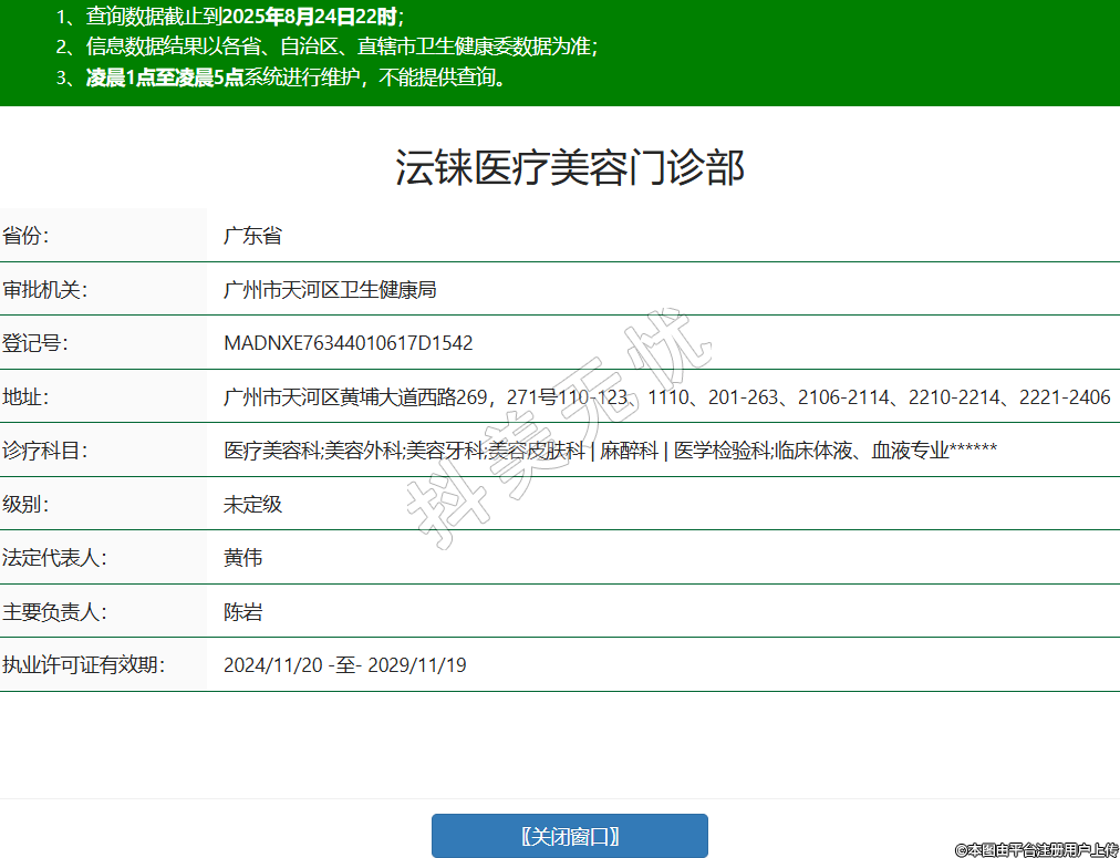 省份:廣東省審批機關:廣州市天河區(qū)衛(wèi)生健康局登記號:MADNXE76344010617D1542地址:廣州市天河區(qū)黃埔大道西路269,271號110-123、1110、201-263、2106-2114、2210-2214、2221-2406診療科目:醫(yī)療美容科;美容外科;美容牙科;美容皮膚科 | 麻醉科 | 醫(yī)學檢驗科;臨床體液、血液專業(yè)******級別:未定級法定代表人:黃偉主要負責人:陳巖執(zhí)業(yè)許可證有效期:2024/11/20 -至- 2029/11/19 -