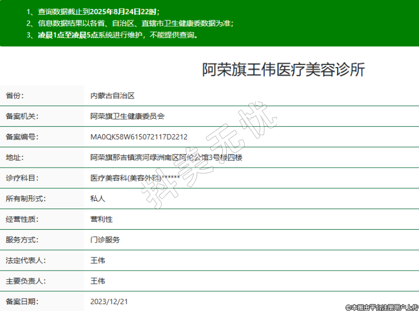 省份:內(nèi)蒙古自治區(qū)備案機(jī)關(guān):阿榮旗衛(wèi)生健康委員會(huì)備案編號(hào):MA0QK58W615072117D2212地址:阿榮旗那吉鎮(zhèn)濱河綠洲南區(qū)阿倫公館3號(hào)樓四樓診療科目:醫(yī)療美容科(美容外科)******所有制形式:私人經(jīng)營(yíng)性質(zhì):營(yíng)利性服務(wù)方式:門診服務(wù)法定代表人:王偉主要負(fù)責(zé)人:王偉備案日期:2023/12/21 -