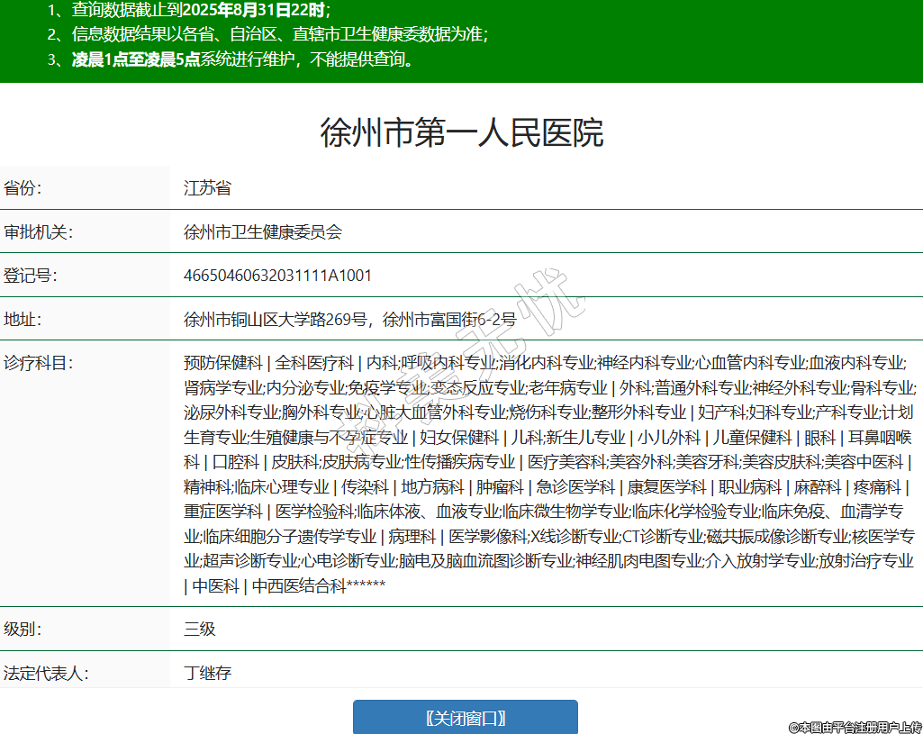 省份:江蘇省審批機(jī)關(guān):徐州市衛(wèi)生健康委員會(huì)登記號(hào):46650460632031111A1001地址:徐州市銅山區(qū)大學(xué)路269號(hào),徐州市富國(guó)街6-2號(hào)診療科目:預(yù)防保健科 | 全科醫(yī)療科 | 內(nèi)科;呼吸內(nèi)科專(zhuān)業(yè);消化內(nèi)科專(zhuān)業(yè);神經(jīng)內(nèi)科專(zhuān)業(yè);心血管內(nèi)科專(zhuān)業(yè);血液內(nèi)科專(zhuān)業(yè);腎病學(xué)專(zhuān)業(yè);內(nèi)分泌專(zhuān)業(yè);免疫學(xué)專(zhuān)業(yè);變態(tài)反應(yīng)專(zhuān)業(yè);老年病專(zhuān)業(yè) | 外科;普通外科專(zhuān)業(yè);神經(jīng)外科專(zhuān)業(yè);骨科專(zhuān)業(yè);泌尿外科專(zhuān)業(yè);胸外科專(zhuān)業(yè);心臟大血管外科專(zhuān)業(yè);燒傷科專(zhuān)業(yè);整形外科專(zhuān)業(yè) | 婦產(chǎn)科;婦科專(zhuān)業(yè);產(chǎn)科專(zhuān)業(yè);計(jì)劃生育專(zhuān)業(yè);生殖健康與不孕癥專(zhuān)業(yè) | 婦女保健科 | 兒科;新生兒專(zhuān)業(yè) | 小兒外科 | 兒童保健科 | 眼科 | 耳鼻咽喉科 | 口腔科 | 皮膚科;皮膚病專(zhuān)業(yè);性傳播疾病專(zhuān)業(yè) | 醫(yī)療美容科;美容外科;美容牙科;美容皮膚科;美容中醫(yī)科 | 精神科;臨床心理專(zhuān)業(yè) | 傳染科 | 地方病科 | 腫瘤科 | 急診醫(yī)學(xué)科 | 康復(fù)醫(yī)學(xué)科 | 職業(yè)病科 | 麻醉科 | 疼痛科 | 重癥醫(yī)學(xué)科 | 醫(yī)學(xué)檢驗(yàn)科;臨床體液、血液專(zhuān)業(yè);臨床微生物學(xué)專(zhuān)業(yè);臨床化學(xué)檢驗(yàn)專(zhuān)業(yè);臨床免疫、血清學(xué)專(zhuān)業(yè);臨床細(xì)胞分子遺傳學(xué)專(zhuān)業(yè) | 病理科 | 醫(yī)學(xué)影像科;X線診斷專(zhuān)業(yè);CT診斷專(zhuān)業(yè);磁共振成像診斷專(zhuān)業(yè);核醫(yī)學(xué)專(zhuān)業(yè);超聲診斷專(zhuān)業(yè);心電診斷專(zhuān)業(yè);腦電及腦血流圖診斷專(zhuān)業(yè);神經(jīng)肌肉電圖專(zhuān)業(yè);介入放射學(xué)專(zhuān)業(yè);放射治療專(zhuān)業(yè) | 中醫(yī)科 | 中西醫(yī)結(jié)合科******級(jí)別:三級(jí)法定代表人:丁繼存主要負(fù)責(zé)人:丁繼存執(zhí)業(yè)許可證有效期:2019/02/26 -至- 2034/02/25 -