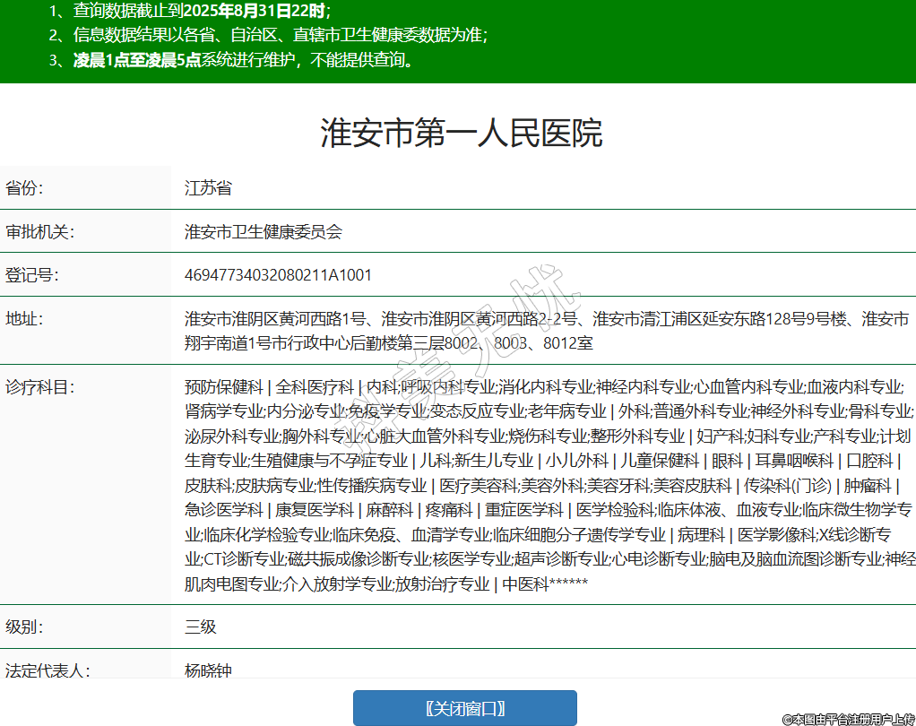 省份:江蘇省審批機(jī)關(guān):淮安市衛(wèi)生健康委員會(huì)登記號(hào):46947734032080211A1001地址:淮安市淮陰區(qū)黃河西路1號(hào)、淮安市淮陰區(qū)黃河西路2-2號(hào)、淮安市清江浦區(qū)延安東路128號(hào)9號(hào)樓、淮安市翔宇南道1號(hào)市行政中心后勤樓第三層8002、8003、8012室診療科目:預(yù)防保健科 | 全科醫(yī)療科 | 內(nèi)科;呼吸內(nèi)科專(zhuān)業(yè);消化內(nèi)科專(zhuān)業(yè);神經(jīng)內(nèi)科專(zhuān)業(yè);心血管內(nèi)科專(zhuān)業(yè);血液內(nèi)科專(zhuān)業(yè);腎病學(xué)專(zhuān)業(yè);內(nèi)分泌專(zhuān)業(yè);免疫學(xué)專(zhuān)業(yè);變態(tài)反應(yīng)專(zhuān)業(yè);老年病專(zhuān)業(yè) | 外科;普通外科專(zhuān)業(yè);神經(jīng)外科專(zhuān)業(yè);骨科專(zhuān)業(yè);泌尿外科專(zhuān)業(yè);胸外科專(zhuān)業(yè);心臟大血管外科專(zhuān)業(yè);燒傷科專(zhuān)業(yè);整形外科專(zhuān)業(yè) | 婦產(chǎn)科;婦科專(zhuān)業(yè);產(chǎn)科專(zhuān)業(yè);計(jì)劃生育專(zhuān)業(yè);生殖健康與不孕癥專(zhuān)業(yè) | 兒科;新生兒專(zhuān)業(yè) | 小兒外科 | 兒童保健科 | 眼科 | 耳鼻咽喉科 | 口腔科 | 皮膚科;皮膚病專(zhuān)業(yè);性傳播疾病專(zhuān)業(yè) | 醫(yī)療美容科;美容外科;美容牙科;美容皮膚科 | 傳染科(門(mén)診) | 腫瘤科 | 急診醫(yī)學(xué)科 | 康復(fù)醫(yī)學(xué)科 | 麻醉科 | 疼痛科 | 重癥醫(yī)學(xué)科 | 醫(yī)學(xué)檢驗(yàn)科;臨床體液、血液專(zhuān)業(yè);臨床微生物學(xué)專(zhuān)業(yè);臨床化學(xué)檢驗(yàn)專(zhuān)業(yè);臨床免疫、血清學(xué)專(zhuān)業(yè);臨床細(xì)胞分子遺傳學(xué)專(zhuān)業(yè) | 病理科 | 醫(yī)學(xué)影像科;X線(xiàn)診斷專(zhuān)業(yè);CT診斷專(zhuān)業(yè);磁共振成像診斷專(zhuān)業(yè);核醫(yī)學(xué)專(zhuān)業(yè);超聲診斷專(zhuān)業(yè);心電診斷專(zhuān)業(yè);腦電及腦血流圖診斷專(zhuān)業(yè);神經(jīng)肌肉電圖專(zhuān)業(yè);介入放射學(xué)專(zhuān)業(yè);放射治療專(zhuān)業(yè) | 中醫(yī)科******級(jí)別:三級(jí)法定代表人:楊曉鐘主要負(fù)責(zé)人:楊曉鐘執(zhí)業(yè)許可證有效期:2024/04/09 -至- 2036/01/19 -