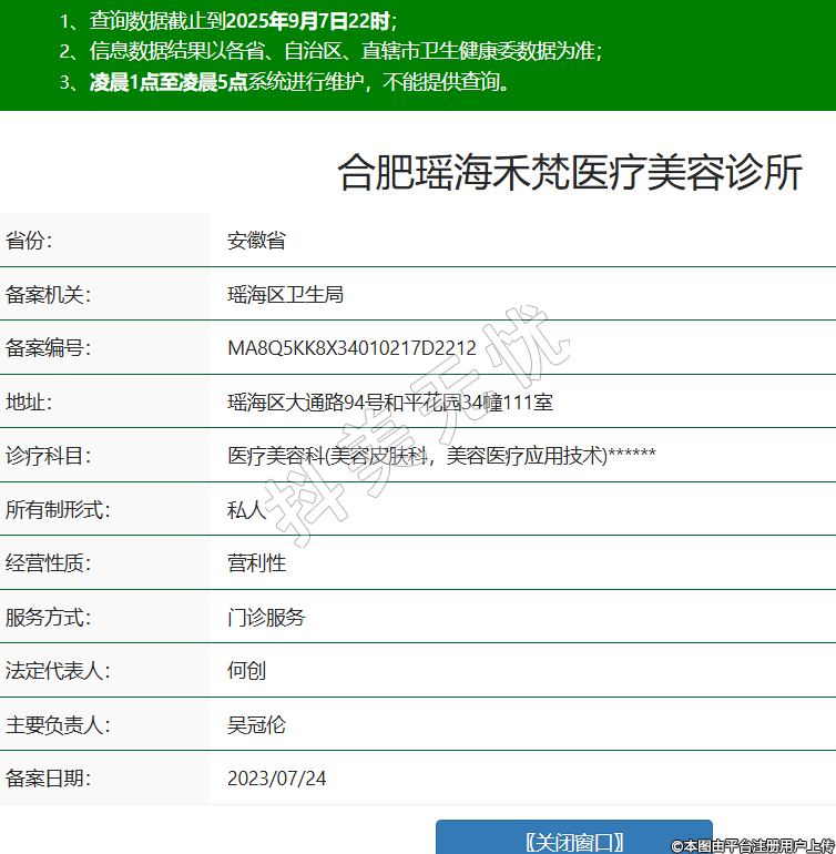省份:安徽省備案機(jī)關(guān):瑤海區(qū)衛(wèi)生局備案編號(hào):MA8Q5KK8X34010217D2212地址:瑤海區(qū)大通路94號(hào)和平花園34幢111室診療科目:醫(yī)療美容科(美容皮膚科,美容醫(yī)療應(yīng)用技術(shù))******所有制形式:私人經(jīng)營(yíng)性質(zhì):營(yíng)利性服務(wù)方式:門診服務(wù)法定代表人:何創(chuàng)主要負(fù)責(zé)人:吳冠倫備案日期:2023/07/24 -
