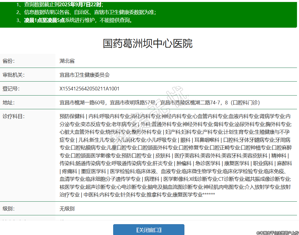 省份:湖北省審批機(jī)關(guān):宜昌市衛(wèi)生健康委員會登記號:X1554125642050211A1001地址:宜昌市樵湖一路60號,宜昌市夜明珠路57號,宜昌市西陵區(qū)樵湖二路74-7,8(口腔科門診)診療科目:預(yù)防保健科 | 內(nèi)科;呼吸內(nèi)科專業(yè);消化內(nèi)科專業(yè);神經(jīng)內(nèi)科專業(yè);心血管內(nèi)科專業(yè);血液內(nèi)科專業(yè);腎病學(xué)專業(yè);內(nèi)分泌專業(yè);變態(tài)反應(yīng)專業(yè);老年病專業(yè) | 外科;普通外科專業(yè);神經(jīng)外科專業(yè);骨科專業(yè);泌尿外科專業(yè);胸外科專業(yè);心臟大血管外科專業(yè);燒傷科專業(yè);整形外科專業(yè) | 婦產(chǎn)科;婦科專業(yè);產(chǎn)科專業(yè);計劃生育專業(yè);生殖健康與不孕癥專業(yè) | 兒科;新生兒專業(yè);小兒消化專業(yè);小兒呼吸專業(yè) | 眼科 | 耳鼻咽喉科 | 口腔科;牙體牙髓病專業(yè);牙周病專業(yè);口腔粘膜病專業(yè);兒童口腔專業(yè);口腔頜面外科專業(yè);口腔修復(fù)專業(yè);口腔正畸專業(yè);口腔種植專業(yè);口腔麻醉專業(yè);口腔頜面醫(yī)學(xué)影像專業(yè);預(yù)防口腔專業(yè) | 皮膚科 | 醫(yī)療美容科;美容外科;美容牙科;美容皮膚科 | 精神科 | 傳染科;腸道傳染病專業(yè);呼吸道傳染病專業(yè);肝炎專業(yè) | 腫瘤科 | 急診醫(yī)學(xué)科 | 康復(fù)醫(yī)學(xué)科 | 職業(yè)病科 | 麻醉科 | 疼痛科 | 重癥醫(yī)學(xué)科 | 醫(yī)學(xué)檢驗科;臨床體液、血液專業(yè);臨床微生物學(xué)專業(yè);臨床化學(xué)檢驗專業(yè);臨床免疫、血清學(xué)專業(yè);臨床細(xì)胞分子遺傳學(xué)專業(yè) | 病理科 | 醫(yī)學(xué)影像科;X線診斷專業(yè);CT診斷專業(yè);磁共振成像診斷專業(yè);核醫(yī)學(xué)專業(yè);超聲診斷專業(yè);心電診斷專業(yè);腦電及腦血流圖診斷專業(yè);神經(jīng)肌肉電圖專業(yè);介入放射學(xué)專業(yè);放射治療專業(yè) | 中醫(yī)科;內(nèi)科專業(yè);針灸科專業(yè);推拿科專業(yè);康復(fù)醫(yī)學(xué)專業(yè)******級別:無級別法定代表人:徐周明主要負(fù)責(zé)人:徐周明執(zhí)業(yè)許可證有效期:2018/07/21 -至- 2033/07/20 -