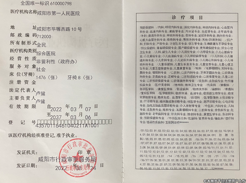 發(fā)證機(jī)關(guān):咸陽市衛(wèi)生健康委員會(huì)
