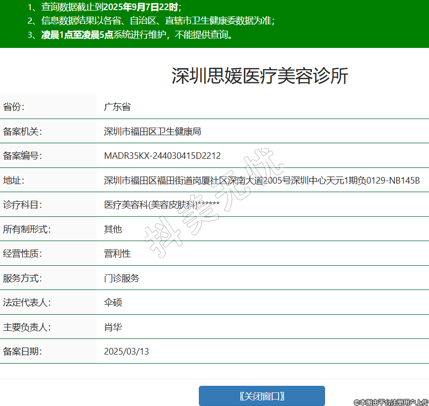 深圳思媛醫(yī)療美容診所,診療科目:醫(yī)療美容科(美容皮膚科)******