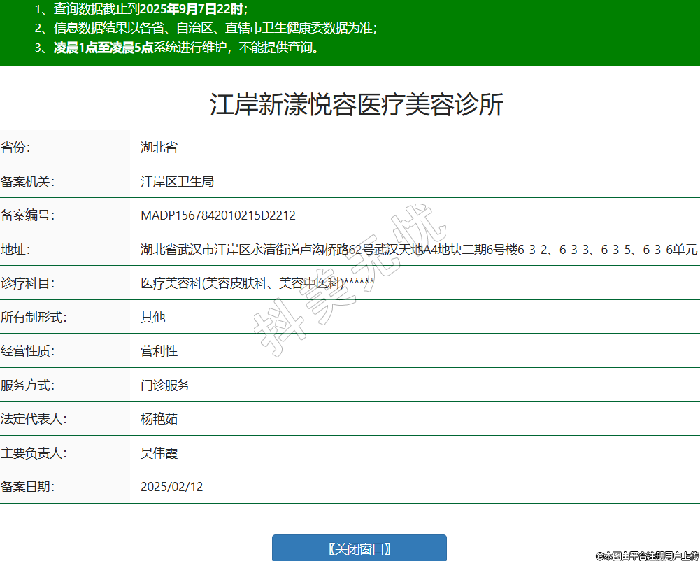 省份:湖北省備案機(jī)關(guān):江岸區(qū)衛(wèi)生局備案編號(hào):MADP1567842010215D2212地址:湖北省武漢市江岸區(qū)永清街道盧溝橋路62號(hào)武漢天地A4地塊二期6號(hào)樓6-3-2、6-3-3、6-3-5、6-3-6單元診療科目:醫(yī)療美容科(美容皮膚科、美容中醫(yī)科)******所有制形式:其他經(jīng)營性質(zhì):營利性服務(wù)方式:門診服務(wù)法定代表人:楊艷茹主要負(fù)責(zé)人:吳偉霞備案日期:2025/02/12 -