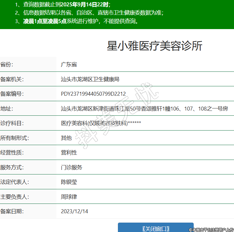 省份:廣東省備案機關:汕頭市龍湖區(qū)衛(wèi)生健康局備案編號:PDY23719944050799D2212地址:汕頭市龍湖區(qū)新津街道珠江路50號香頌雅軒1幢106、107、108之一號房診療科目:醫(yī)療美容科(僅限美容皮膚科)******所有制形式:其他經(jīng)營性質:營利性服務方式:門診服務法定代表人:陳銀瑩主要負責人:周球律備案日期:2023/12/14 -
