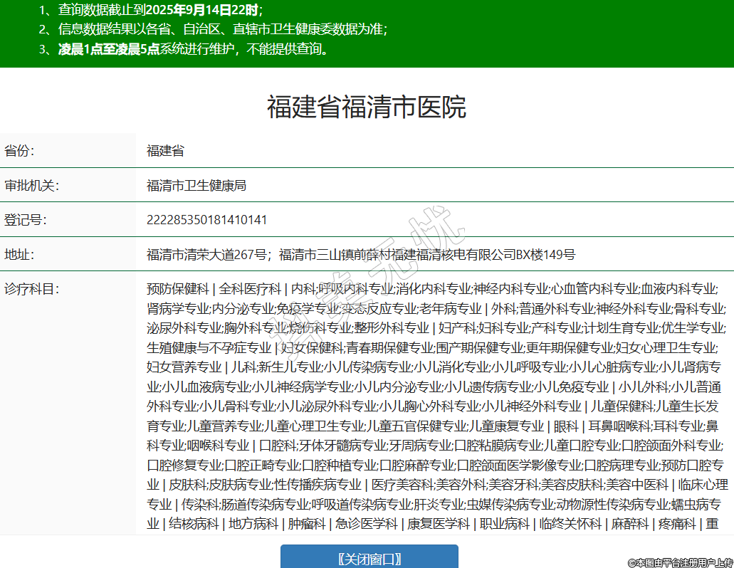 省份:福建省審批機(jī)關(guān):福清市衛(wèi)生健康局登記號(hào):222285350181410141地址:福清市清榮大道267號(hào);福清市三山鎮(zhèn)前薛村福建福清核電有限公司BX樓149號(hào)診療科目:預(yù)防保健科 | 全科醫(yī)療科 | 內(nèi)科;呼吸內(nèi)科專業(yè);消化內(nèi)科專業(yè);神經(jīng)內(nèi)科專業(yè);心血管內(nèi)科專業(yè);血液內(nèi)科專業(yè);腎病學(xué)專業(yè);內(nèi)分泌專業(yè);免疫學(xué)專業(yè);變態(tài)反應(yīng)專業(yè);老年病專業(yè) | 外科;普通外科專業(yè);神經(jīng)外科專業(yè);骨科專業(yè);泌尿外科專業(yè);胸外科專業(yè);燒傷科專業(yè);整形外科專業(yè) | 婦產(chǎn)科;婦科專業(yè);產(chǎn)科專業(yè);計(jì)劃生育專業(yè);優(yōu)生學(xué)專業(yè);生殖健康與不孕癥專業(yè) | 婦女保健科;青春期保健專業(yè);圍產(chǎn)期保健專業(yè);更年期保健專業(yè);婦女心理衛(wèi)生專業(yè);婦女營養(yǎng)專業(yè) | 兒科;新生兒專業(yè);小兒傳染病專業(yè);小兒消化專業(yè);小兒呼吸專業(yè);小兒心臟病專業(yè);小兒腎病專業(yè);小兒血液病專業(yè);小兒神經(jīng)病學(xué)專業(yè);小兒內(nèi)分泌專業(yè);小兒遺傳病專業(yè);小兒免疫專業(yè) | 小兒外科;小兒普通外科專業(yè);小兒骨科專業(yè);小兒泌尿外科專業(yè);小兒胸心外科專業(yè);小兒神經(jīng)外科專業(yè) | 兒童保健科;兒童生長發(fā)育專業(yè);兒童營養(yǎng)專業(yè);兒童心理衛(wèi)生專業(yè);兒童五官保健專業(yè);兒童康復(fù)專業(yè) | 眼科 | 耳鼻咽喉科;耳科專業(yè);鼻科專業(yè);咽喉科專業(yè) | 口腔科;牙體牙髓病專業(yè);牙周病專業(yè);口腔粘膜病專業(yè);兒童口腔專業(yè);口腔頜面外科專業(yè);口腔修復(fù)專業(yè);口腔正畸專業(yè);口腔種植專業(yè);口腔麻醉專業(yè);口腔頜面醫(yī)學(xué)影像專業(yè);口腔病理專業(yè);預(yù)防口腔專業(yè) | 皮膚科;皮膚病專業(yè);性傳播疾病專業(yè) | 醫(yī)療美容科;美容外科;美容牙科;美容皮膚科;美容中醫(yī)科 | 臨床心理專業(yè) | 傳染科;腸道傳染病專業(yè);呼吸道傳染病專業(yè);肝炎專業(yè);蟲媒傳染病專業(yè);動(dòng)物源性傳染病專業(yè);蠕蟲病專業(yè) | 結(jié)核病科 | 地方病科 | 腫瘤科 | 急診醫(yī)學(xué)科 | 康復(fù)醫(yī)學(xué)科 | 職業(yè)病科 | 臨終關(guān)懷科 | 麻醉科 | 疼痛科 | 重癥醫(yī)學(xué)科 | 醫(yī)學(xué)檢驗(yàn)科;臨床體液、血液專業(yè);臨床微生物學(xué)專業(yè);臨床化學(xué)檢驗(yàn)專業(yè);臨床免疫、血清學(xué)專業(yè);臨床細(xì)胞分子遺傳學(xué)專業(yè) | 病理科 | 醫(yī)學(xué)影像科;X線診斷專業(yè);CT診斷專業(yè);磁共振成像診斷專業(yè);核醫(yī)學(xué)專業(yè);超聲診斷專業(yè);心電診斷專業(yè);腦電及腦血流圖診斷專業(yè);神經(jīng)肌肉電圖專業(yè);介入放射學(xué)專業(yè) | 中醫(yī)科;內(nèi)科專業(yè);外科專業(yè);婦產(chǎn)科專業(yè);兒科專業(yè);皮膚科專業(yè);眼科專業(yè);耳鼻咽喉科專業(yè);口腔科專業(yè);腫瘤科專業(yè);骨傷科專業(yè);肛腸科專業(yè);老年病科專業(yè);針灸科專業(yè);推拿科專業(yè);康復(fù)醫(yī)學(xué)專業(yè);急診科專業(yè);預(yù)防保健科專業(yè) | 中西醫(yī)結(jié)合科******級(jí)別:三級(jí)法定代表人:林仕忠主要負(fù)責(zé)人:林仕忠執(zhí)業(yè)許可證有效期:2023/03/29 -至- 2029/03/28 -