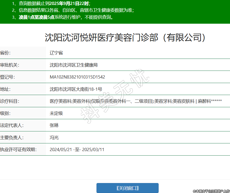 沈陽(yáng)沈河悅妍醫(yī)療美容門診部(有限公司),診療科目:醫(yī)療美容科;美容外科(僅限開展美容外科一、二級(jí)項(xiàng)目);美容牙科;美容皮膚科 | 麻醉科******