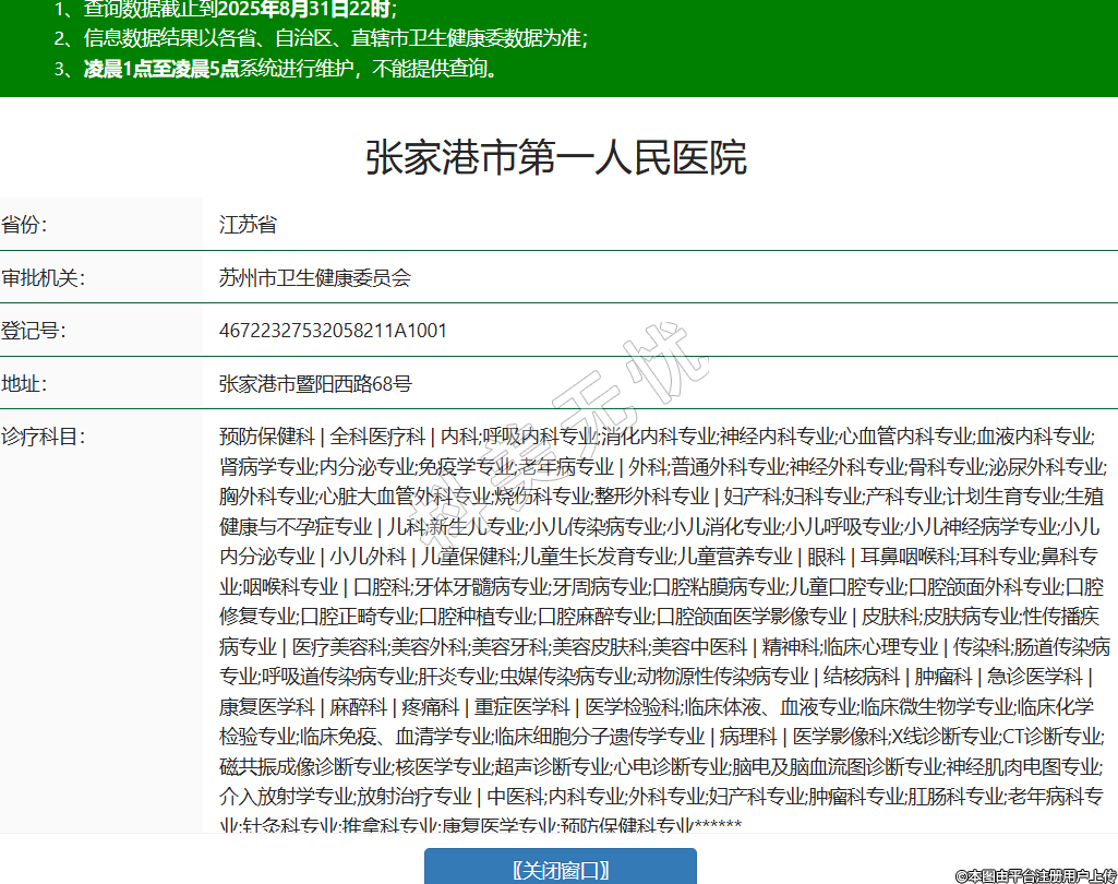 省份:江蘇省審批機關(guān):蘇州市衛(wèi)生健康委員會登記號:46722327532058211A1001地址:張家港市暨陽西路68號診療科目:預(yù)防保健科 | 全科醫(yī)療科 | 內(nèi)科;呼吸內(nèi)科專業(yè);消化內(nèi)科專業(yè);神經(jīng)內(nèi)科專業(yè);心血管內(nèi)科專業(yè);血液內(nèi)科專業(yè);腎病學(xué)專業(yè);內(nèi)分泌專業(yè);免疫學(xué)專業(yè);老年病專業(yè) | 外科;普通外科專業(yè);神經(jīng)外科專業(yè);骨科專業(yè);泌尿外科專業(yè);胸外科專業(yè);心臟大血管外科專業(yè);燒傷科專業(yè);整形外科專業(yè) | 婦產(chǎn)科;婦科專業(yè);產(chǎn)科專業(yè);計劃生育專業(yè);生殖健康與不孕癥專業(yè) | 兒科;新生兒專業(yè);小兒傳染病專業(yè);小兒消化專業(yè);小兒呼吸專業(yè);小兒神經(jīng)病學(xué)專業(yè);小兒內(nèi)分泌專業(yè) | 小兒外科 | 兒童保健科;兒童生長發(fā)育專業(yè);兒童營養(yǎng)專業(yè) | 眼科 | 耳鼻咽喉科;耳科專業(yè);鼻科專業(yè);咽喉科專業(yè) | 口腔科;牙體牙髓病專業(yè);牙周病專業(yè);口腔粘膜病專業(yè);兒童口腔專業(yè);口腔頜面外科專業(yè);口腔修復(fù)專業(yè);口腔正畸專業(yè);口腔種植專業(yè);口腔麻醉專業(yè);口腔頜面醫(yī)學(xué)影像專業(yè) | 皮膚科;皮膚病專業(yè);性傳播疾病專業(yè) | 醫(yī)療美容科;美容外科;美容牙科;美容皮膚科;美容中醫(yī)科 | 精神科;臨床心理專業(yè) | 傳染科;腸道傳染病專業(yè);呼吸道傳染病專業(yè);肝炎專業(yè);蟲媒傳染病專業(yè);動物源性傳染病專業(yè) | 結(jié)核病科 | 腫瘤科 | 急診醫(yī)學(xué)科 | 康復(fù)醫(yī)學(xué)科 | 麻醉科 | 疼痛科 | 重癥醫(yī)學(xué)科 | 醫(yī)學(xué)檢驗科;臨床體液、血液專業(yè);臨床微生物學(xué)專業(yè);臨床化學(xué)檢驗專業(yè);臨床免疫、血清學(xué)專業(yè);臨床細胞分子遺傳學(xué)專業(yè) | 病理科 | 醫(yī)學(xué)影像科;X線診斷專業(yè);CT診斷專業(yè);磁共振成像診斷專業(yè);核醫(yī)學(xué)專業(yè);超聲診斷專業(yè);心電診斷專業(yè);腦電及腦血流圖診斷專業(yè);神經(jīng)肌肉電圖專業(yè);介入放射學(xué)專業(yè);放射治療專業(yè) | 中醫(yī)科;內(nèi)科專業(yè);外科專業(yè);婦產(chǎn)科專業(yè);腫瘤科專業(yè);肛腸科專業(yè);老年病科專業(yè);針灸科專業(yè);推拿科專業(yè);康復(fù)醫(yī)學(xué)專業(yè);預(yù)防保健科專業(yè)******級別:三級法定代表人:屈陳江主要負(fù)責(zé)人:屈陳江執(zhí)業(yè)許可證有效期:2023/03/17 -至- 2036/04/26 -