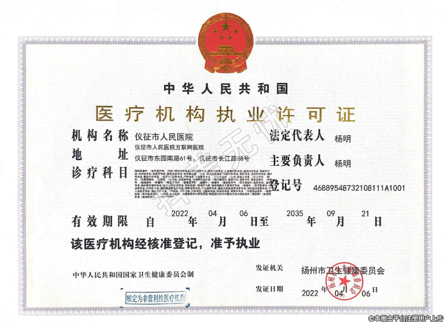 發(fā)證機關(guān):揚州市衛(wèi)生健康委員會