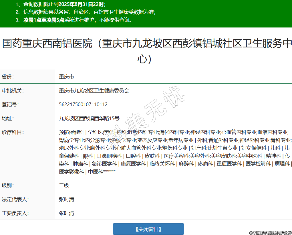 國藥重慶西南鋁醫(yī)院(重慶市九龍坡區(qū)西彭鎮(zhèn)鋁城社區(qū)衛(wèi)生服務(wù)中心)皮膚美容