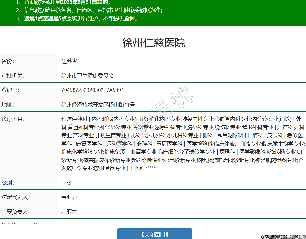 省份:江蘇省審批機關:徐州市衛(wèi)生健康委員會登記號:79458725232030217A5391地址:徐州經(jīng)濟技術開發(fā)區(qū)楊山路11號診療科目:預防保健科 | 內科;呼吸內科專業(yè)(門診);消化內科專業(yè);神經(jīng)內科專業(yè);心血管內科專業(yè);內分泌專業(yè)(門診) | 外科;普通外科專業(yè);神經(jīng)外科專業(yè);骨科專業(yè);泌尿外科專業(yè);胸外科專業(yè);燒傷科專業(yè);整形外科專業(yè) | 婦產(chǎn)科;婦科專業(yè);產(chǎn)科專業(yè);計劃生育專業(yè) | 兒科 | 小兒外科;小兒骨科專業(yè) | 眼科 | 耳鼻咽喉科 | 口腔科 | 皮膚科 | 急診醫(yī)學科 | 康復醫(yī)學科 | 運動醫(yī)學科 | 麻醉科 | 重癥醫(yī)學科 | 醫(yī)學檢驗科;臨床體液、血液專業(yè);臨床微生物學專業(yè);臨床化學檢驗專業(yè);臨床免疫、血清學專業(yè);臨床細胞分子遺傳學專業(yè) | 病理科 | 醫(yī)學影像科;X線診斷專業(yè);CT診斷專業(yè);磁共振成像診斷專業(yè);超聲診斷專業(yè);心電診斷專業(yè);腦電及腦血流圖診斷專業(yè);神經(jīng)肌肉電圖專業(yè);介入放射學專業(yè);放射治療專業(yè) | 中醫(yī)科******級別:三級法定代表人:宗亞力主要負責人:宗亞力執(zhí)業(yè)許可證有效期:2021/10/08 -至- 2036/10/07 -