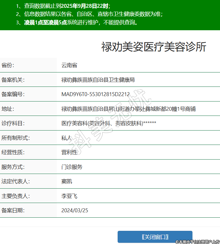 省份:云南省備案機關(guān):祿勸彝族苗族自治縣衛(wèi)生健康局備案編號:MAD9Y6T0-553012815D2212地址:祿勸彝族苗族自治縣屏山街道辦事處彝城新都20幢1號商鋪診療科目:醫(yī)療美容科(美容外科、美容皮膚科)******所有制形式:私人經(jīng)營性質(zhì):營利性服務(wù)方式:門診服務(wù)法定代表人:竇凱主要負(fù)責(zé)人:李亞飛備案日期:2024/03/25 -