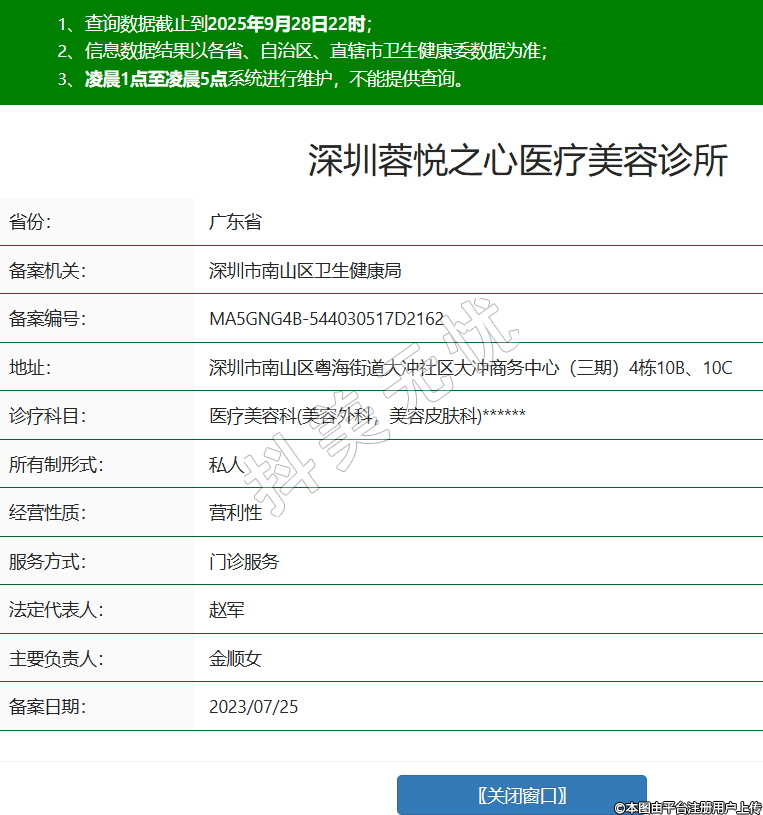 深圳蓉悅之心醫(yī)療美容診所創(chuàng)辦于2021年,位于深圳市南山區(qū)粵海街道大沖社區(qū)大沖商務(wù)中心(三期)4棟10B、10C。診所聚焦醫(yī)療美容核心服務(wù),同時配套提供美容健康咨詢、術(shù)后護理指導等相關(guān)服務(wù),兼顧化妝品零售等輔助項目。