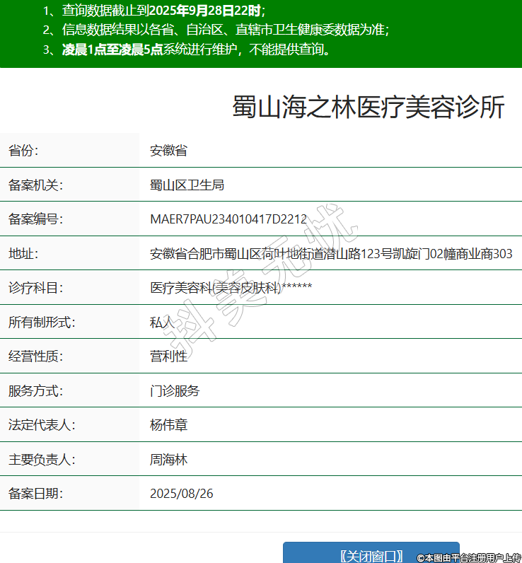 省份:安徽省備案機(jī)關(guān):蜀山區(qū)衛(wèi)生局備案編號(hào):MAER7PAU234010417D2212地址:安徽省合肥市蜀山區(qū)荷葉地街道潛山路123號(hào)凱旋門02幢商業(yè)商303診療科目:醫(yī)療美容科(美容皮膚科)******所有制形式:私人經(jīng)營性質(zhì):營利性服務(wù)方式:門診服務(wù)法定代表人:楊偉章主要負(fù)責(zé)人:周海林 -