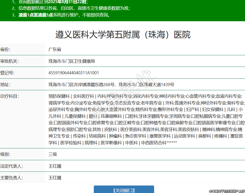 省份:廣東省審批機(jī)關(guān):珠海市斗門(mén)區(qū)衛(wèi)生健康局登記號(hào):45591906444040311A1001地址:珠海市斗門(mén)區(qū)井岸鎮(zhèn)港霞東路268號(hào)、珠海市斗門(mén)區(qū)珠峰大道1439號(hào)診療科目:預(yù)防保健科 | 全科醫(yī)療科 | 內(nèi)科;呼吸內(nèi)科專業(yè);消化內(nèi)科專業(yè);神經(jīng)內(nèi)科專業(yè);心血管內(nèi)科專業(yè);血液內(nèi)科專業(yè);腎病學(xué)專業(yè);內(nèi)分泌專業(yè);免疫學(xué)專業(yè);變態(tài)反應(yīng)專業(yè);老年病專業(yè) | 外科;普通外科專業(yè);神經(jīng)外科專業(yè);骨科專業(yè);泌尿外科專業(yè);胸外科專業(yè);心臟大血管外科專業(yè);燒傷科專業(yè);整形外科專業(yè) | 婦產(chǎn)科 | 婦女保健科 | 兒科 | 小兒外科 | 兒童保健科 | 眼科 | 耳鼻咽喉科 | 口腔科;牙體牙髓病專業(yè);牙周病專業(yè);口腔粘膜病專業(yè);兒童口腔專業(yè);口腔頜面外科專業(yè);口腔修復(fù)專業(yè);口腔正畸專業(yè);口腔種植專業(yè);口腔麻醉專業(yè);口腔頜面醫(yī)學(xué)影像專業(yè);口腔病理專業(yè);預(yù)防口腔專業(yè);其他 | 皮膚科 | 醫(yī)療美容科;美容外科;美容牙科;美容皮膚科 | 精神科;精神病專業(yè);精神衛(wèi)生專業(yè) | 傳染科 | 結(jié)核病科 | 腫瘤科 | 急診醫(yī)學(xué)科 | 康復(fù)醫(yī)學(xué)科 | 運(yùn)動(dòng)醫(yī)學(xué)科 | 麻醉科 | 疼痛科 | 重癥醫(yī)學(xué)科 | 醫(yī)學(xué)檢驗(yàn)科 | 病理科 | 醫(yī)學(xué)影像科 | 中醫(yī)科 | 中西醫(yī)結(jié)合科******級(jí)別:三級(jí)法定代表人:王紅嫚主要負(fù)責(zé)人:王紅嫚執(zhí)業(yè)許可證有效期:2025/04/27 -至- 2026/12/24 -