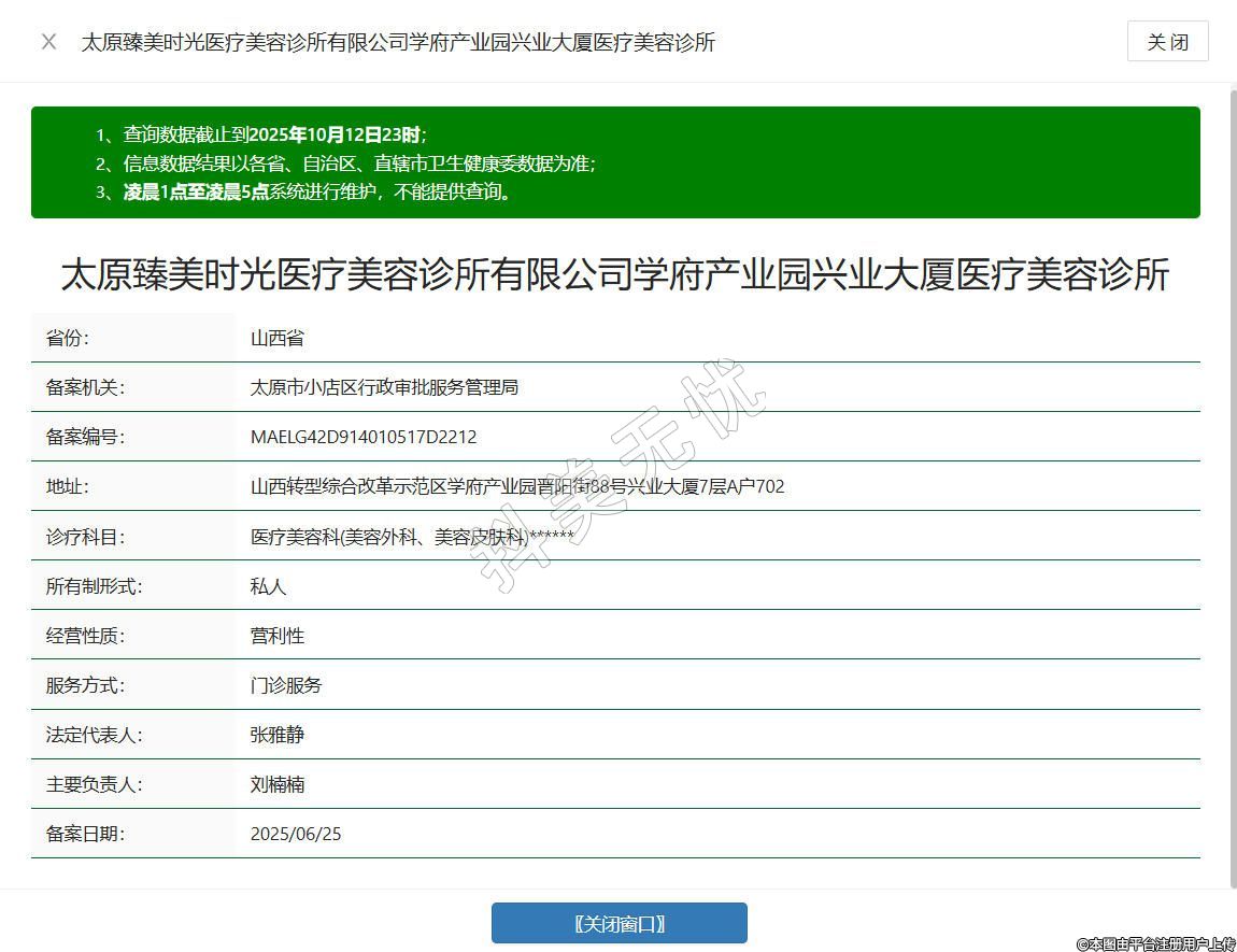 太原臻美時光醫(yī)療美容診所有限公司學府產業(yè)園興業(yè)大廈醫(yī)療美容診所