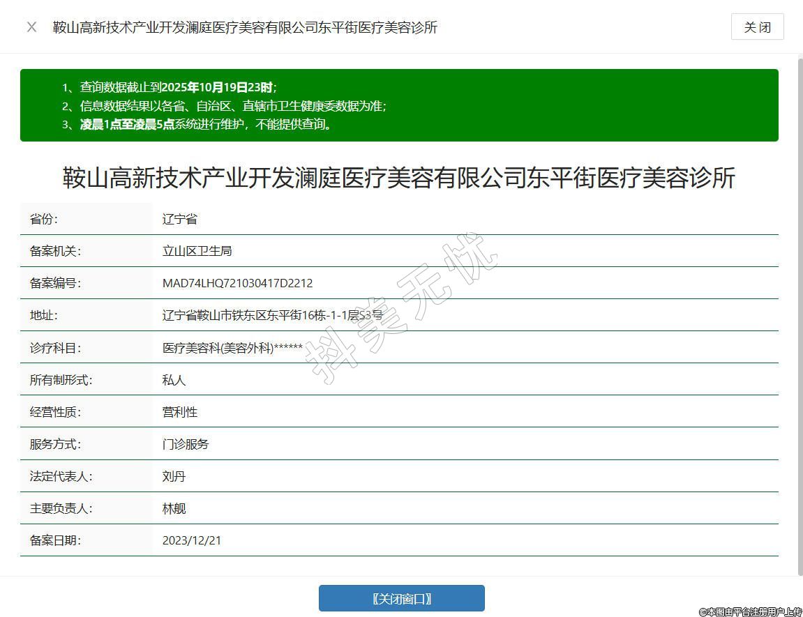 鞍山高新技術(shù)產(chǎn)業(yè)開發(fā)瀾庭醫(yī)療美容有限公司東平街醫(yī)療美容診所
