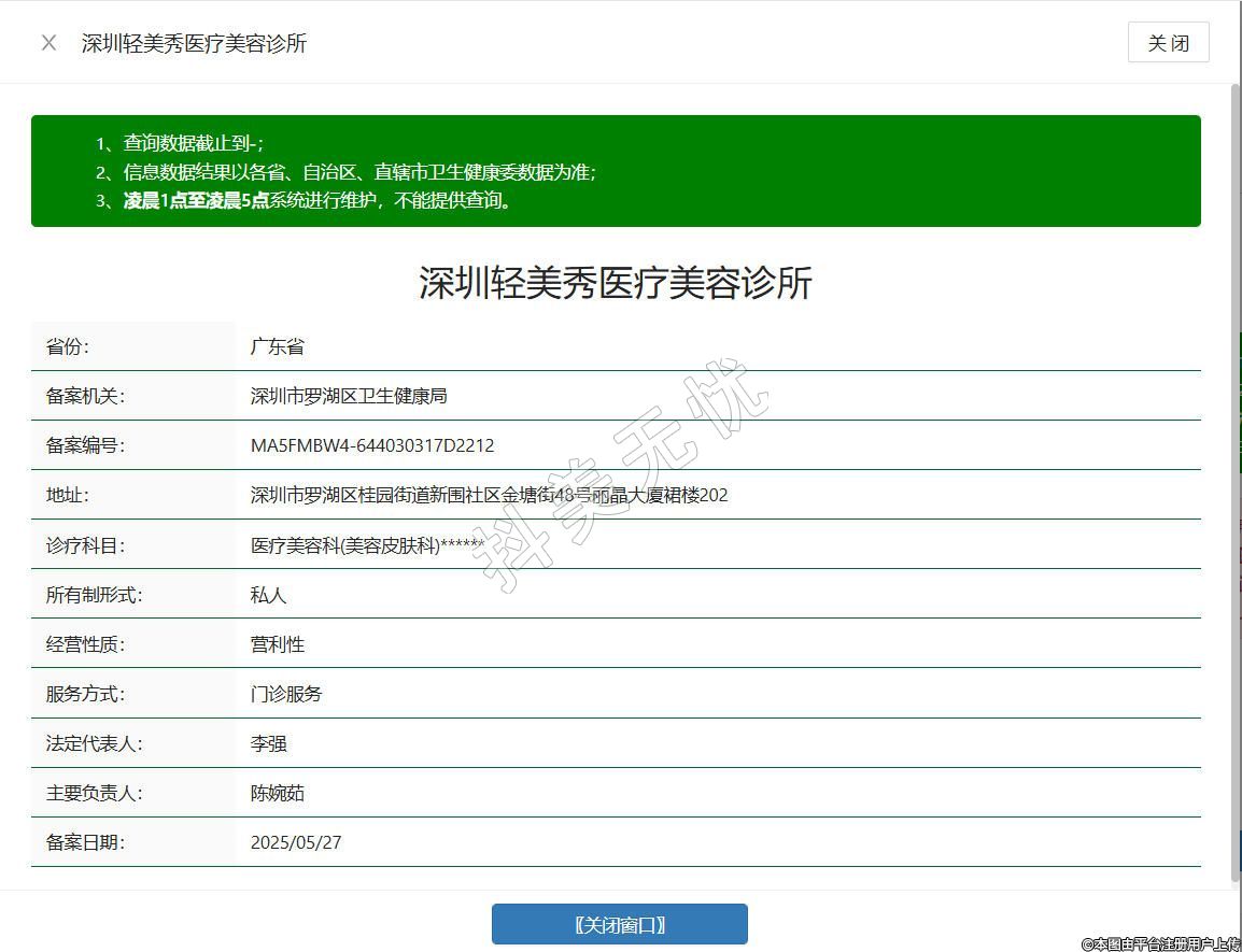 深圳輕美秀醫(yī)療美容診所成立于2019年,位于深圳市羅湖區(qū)桂園街道新圍社區(qū)金塘街48號麗晶大廈裙樓202,是經(jīng)深圳市羅湖區(qū)衛(wèi)生健康局批準(zhǔn)設(shè)立的正規(guī)醫(yī)療美容機(jī)構(gòu),專注皮膚護(hù)理與輕醫(yī)美領(lǐng)域,開展激光護(hù)膚、微整注射、水光補(bǔ)水等項(xiàng)目,同時涵蓋眼部美化、面部輪廓調(diào)整、抗衰去皺等合規(guī)服務(wù),配備6個專業(yè)治療室及合規(guī)醫(yī)療設(shè)備,為服務(wù)提供硬件支持,堅(jiān)守醫(yī)療安全底線,為顧客提供合規(guī)、專業(yè)的醫(yī)美服務(wù)體驗(yàn)。