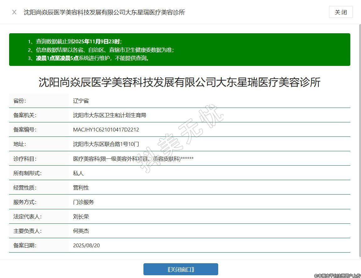 沈陽尚焱辰醫(yī)學(xué)美容科技發(fā)展有限公司大東星瑞醫(yī)療美容診所