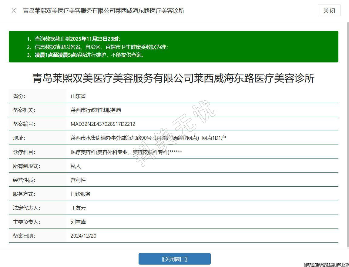 青島萊熙雙美醫(yī)療美容服務(wù)有限公司萊西威海東路醫(yī)療美容診所