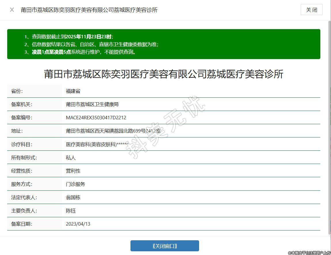 莆田市荔城區(qū)陳奕羽醫(yī)療美容有限公司荔城醫(yī)療美容診所