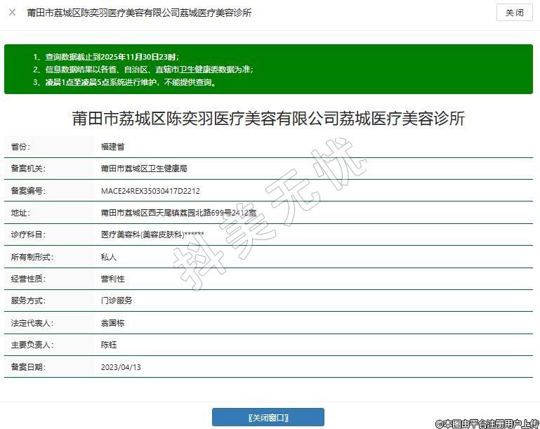 莆田市荔城區(qū)陳奕羽醫(yī)療美容有限公司荔城醫(yī)療美容診所